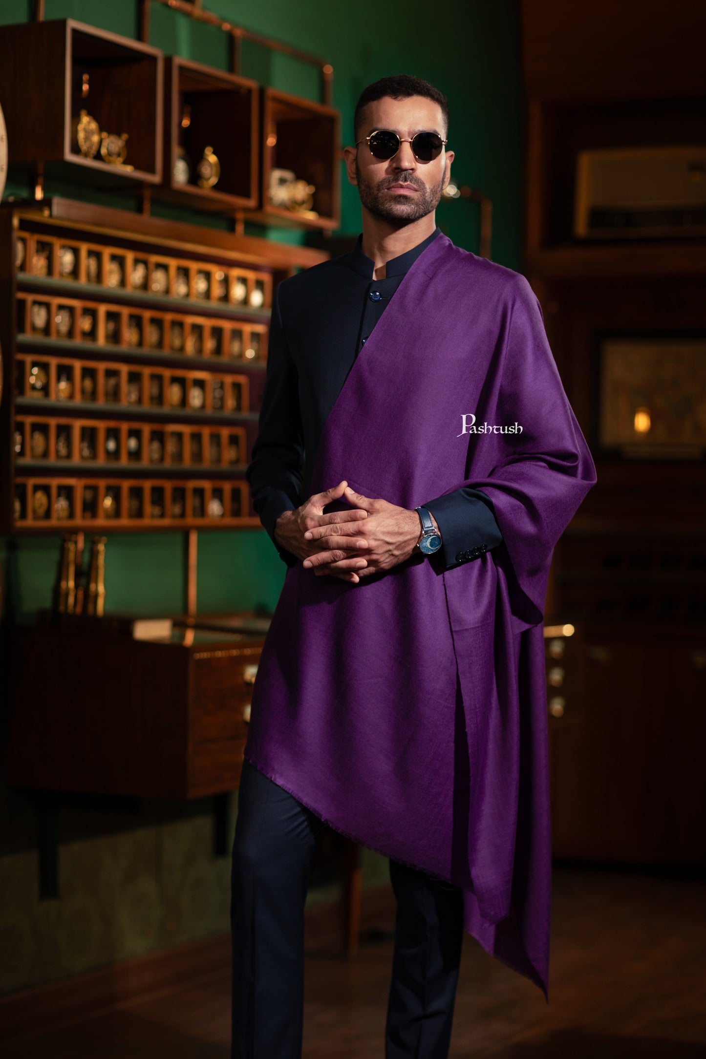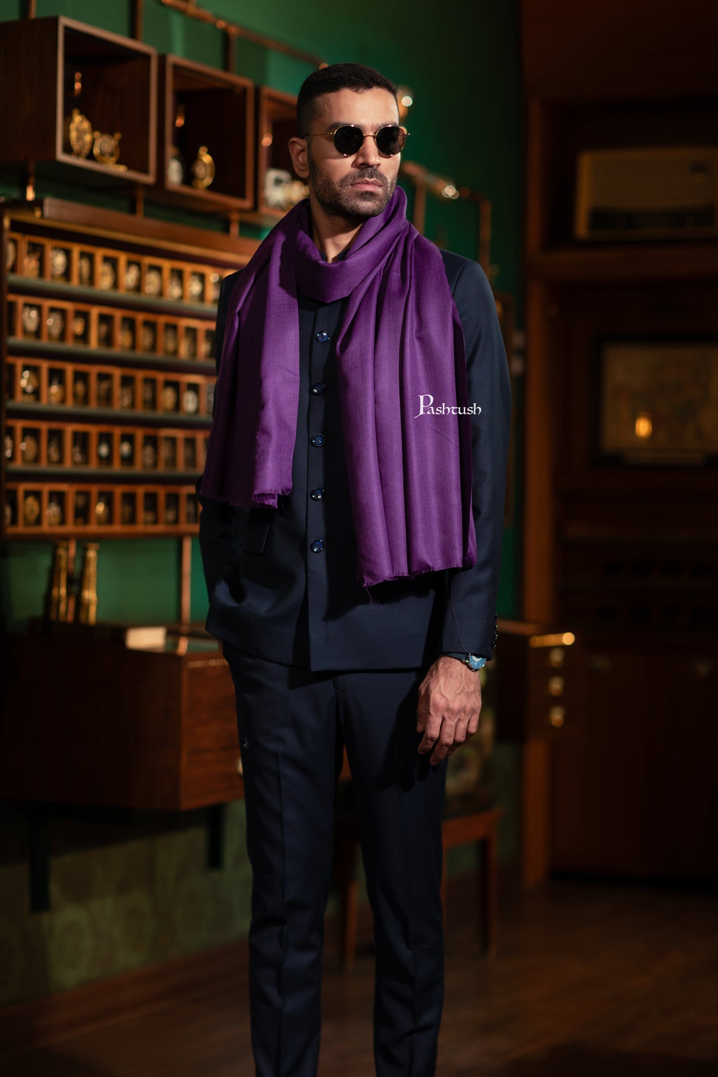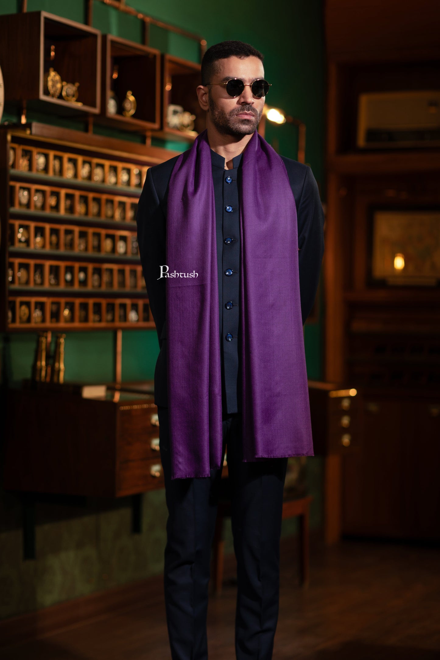 Pashtush His And Her Set Of Mens Fine Wool Stole and Womens Bamboo Stole, Premium Gift Box Packaging, Purple and Multicolour
