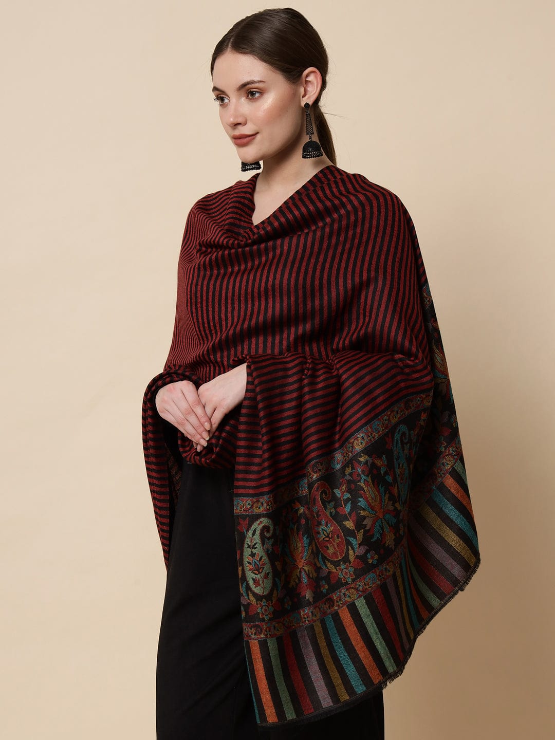 Pashtush His and Her Set of Mens Fine Wool Stole and Womens Paiseley Shawl with Gift Box Packaging, Red and Multicolour