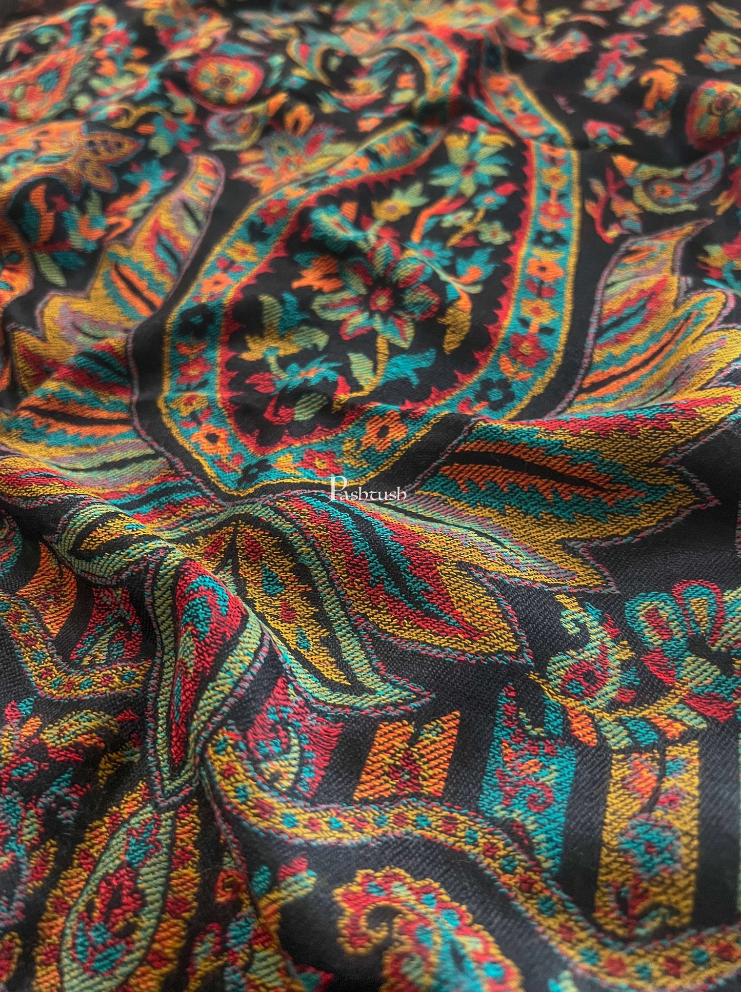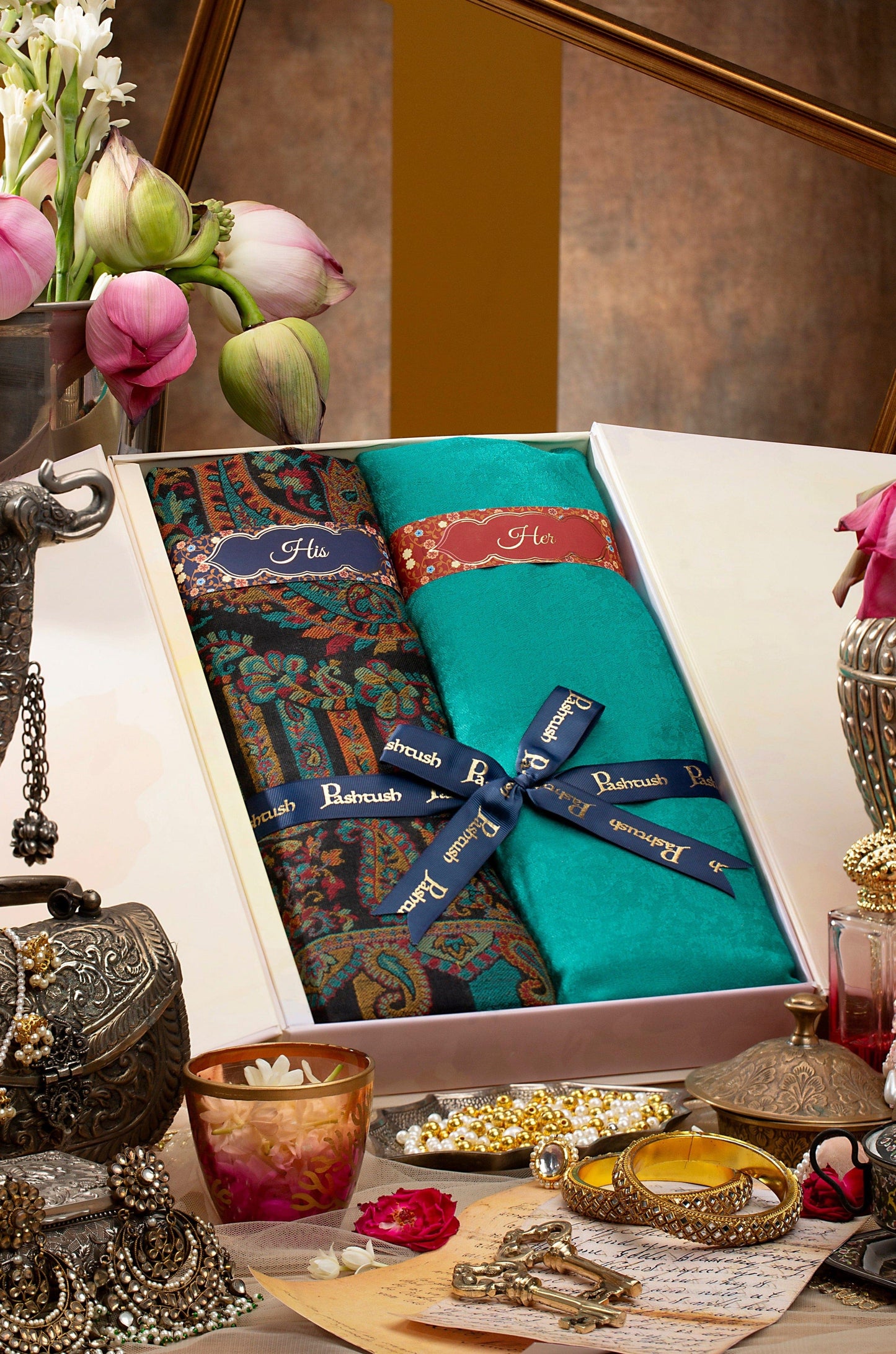 Pashtush His and Her Set of Mens Fine Wool Stole and Womens Shawl with Premium Gift Box Packaging, Black and Arabic Green