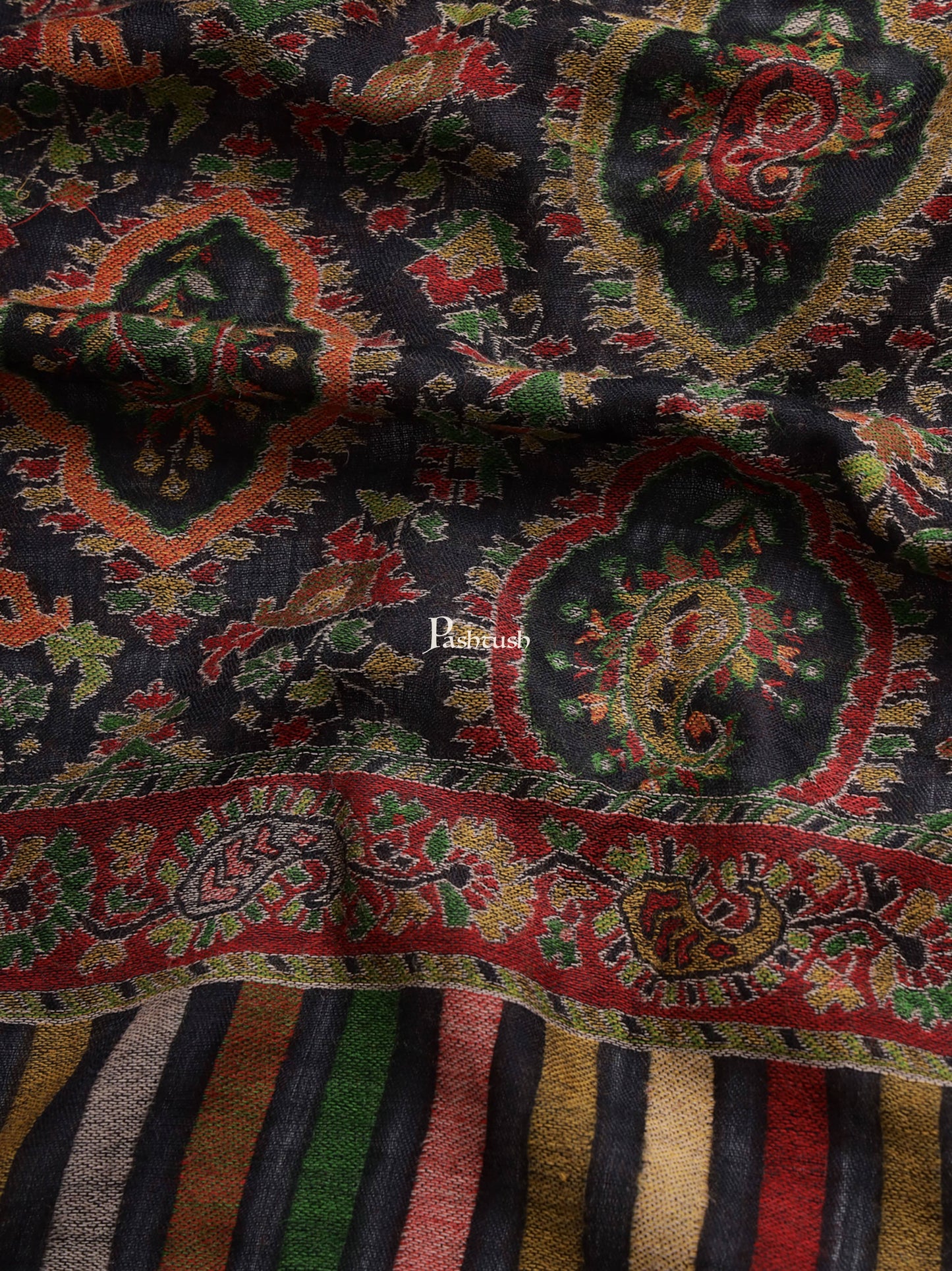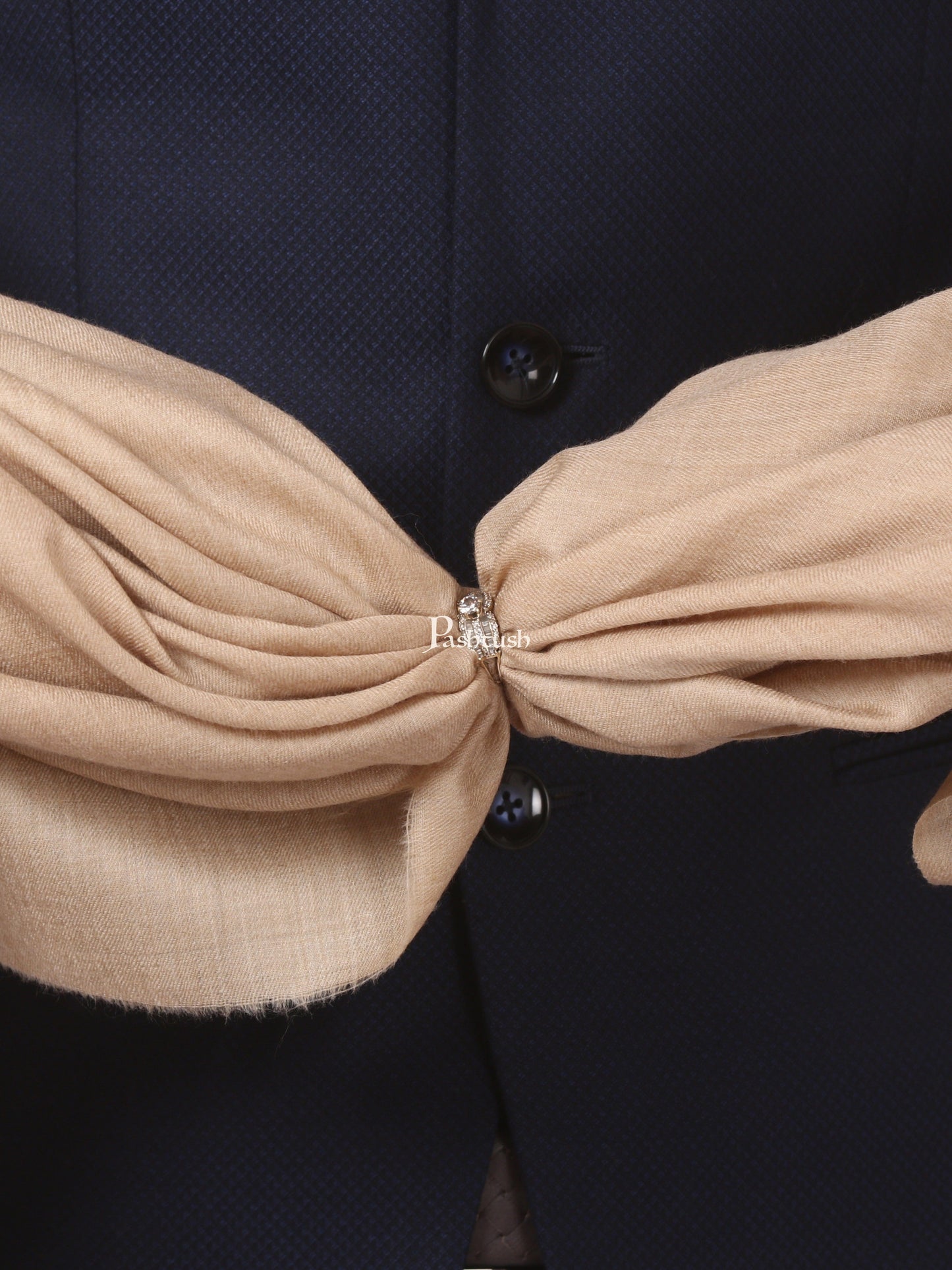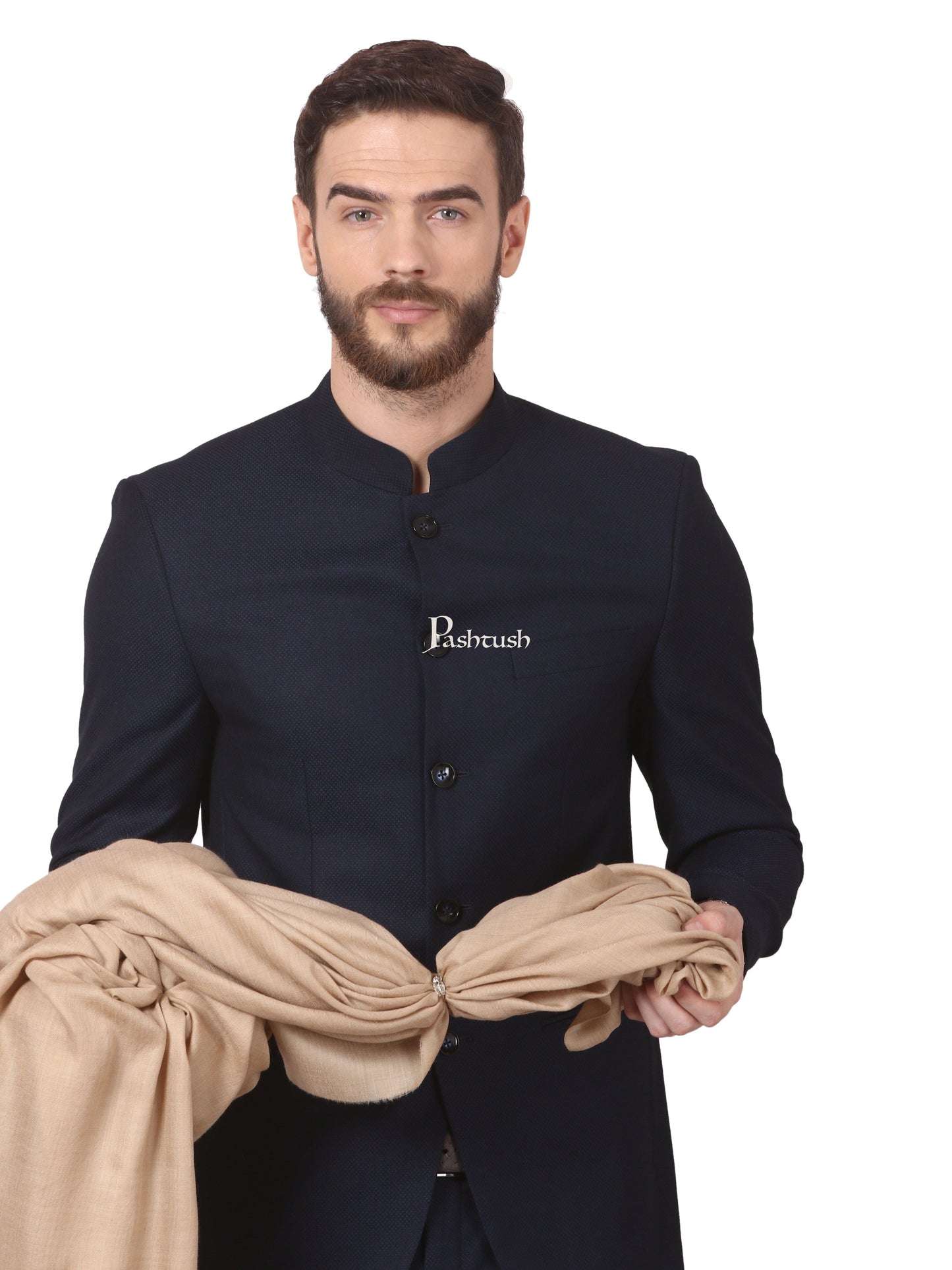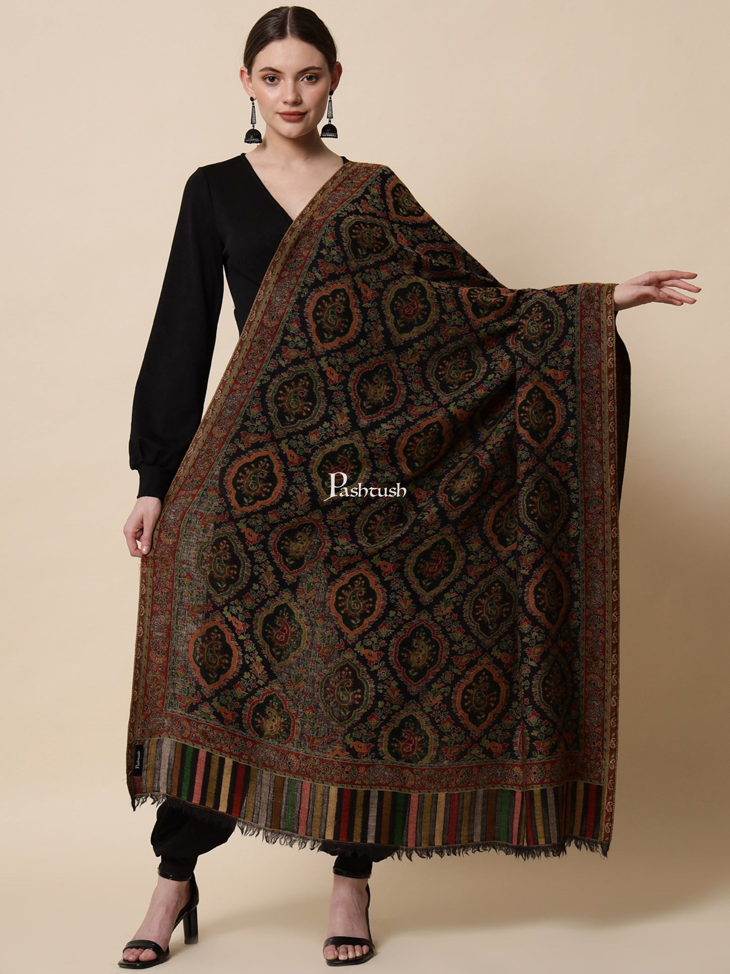 Pashtush His And Her Set Of Pure Wool Shawl and Pure Ethnic Weave Shawl With Wooden Chester Box, Beige and Multi colour