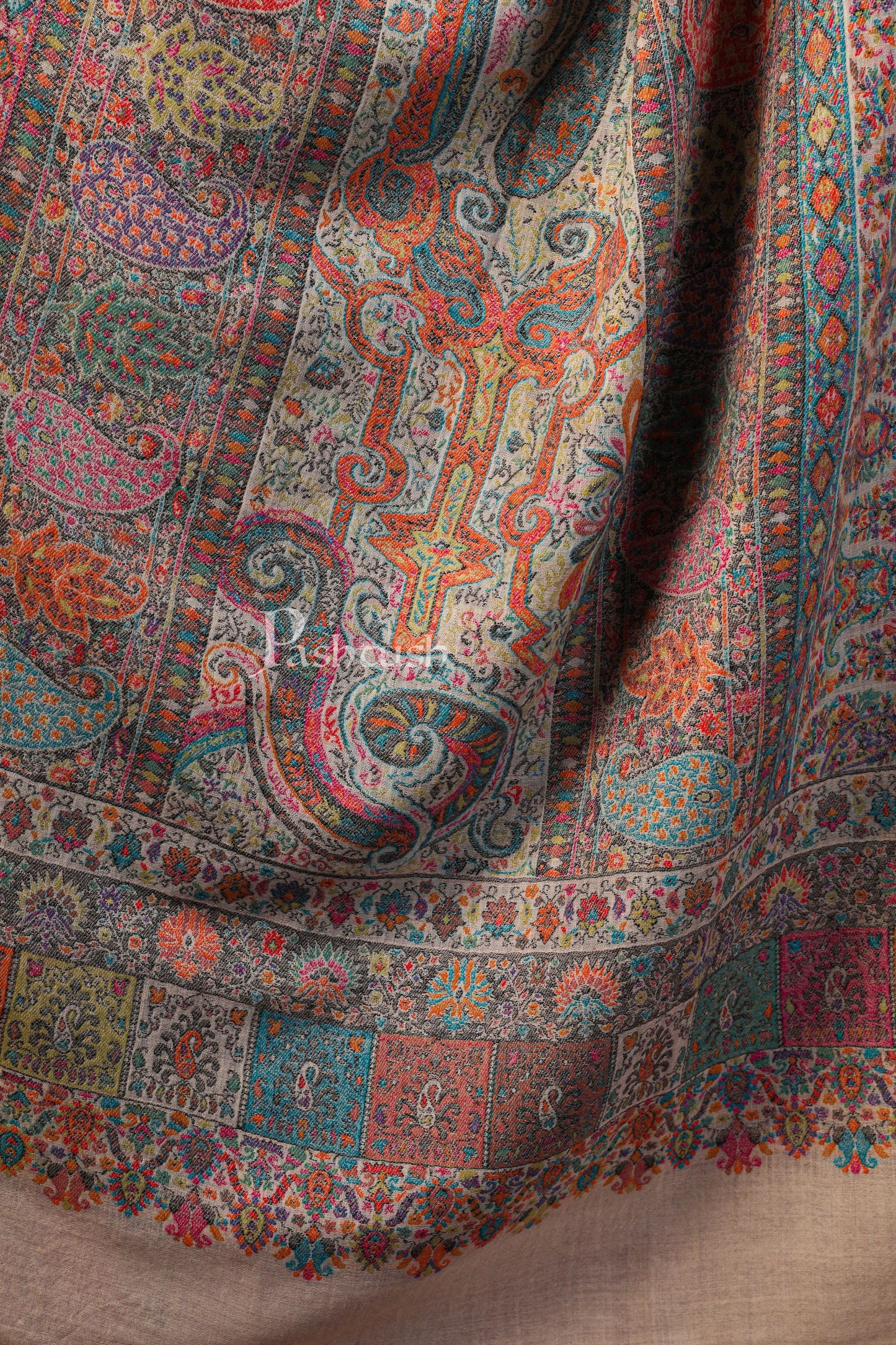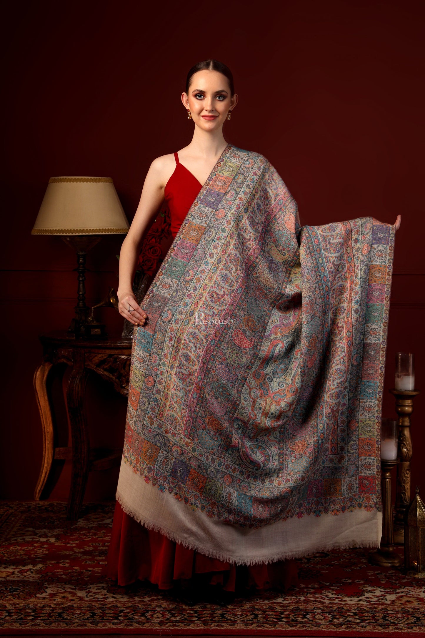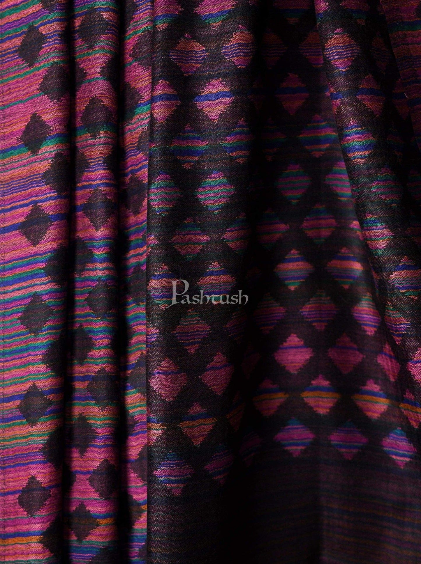 Pashtush His And Her Set Of Reversible Pure Wool Stole and Pure Ethnic Weave Shawl With Wooden Chester Box, Multi Colour