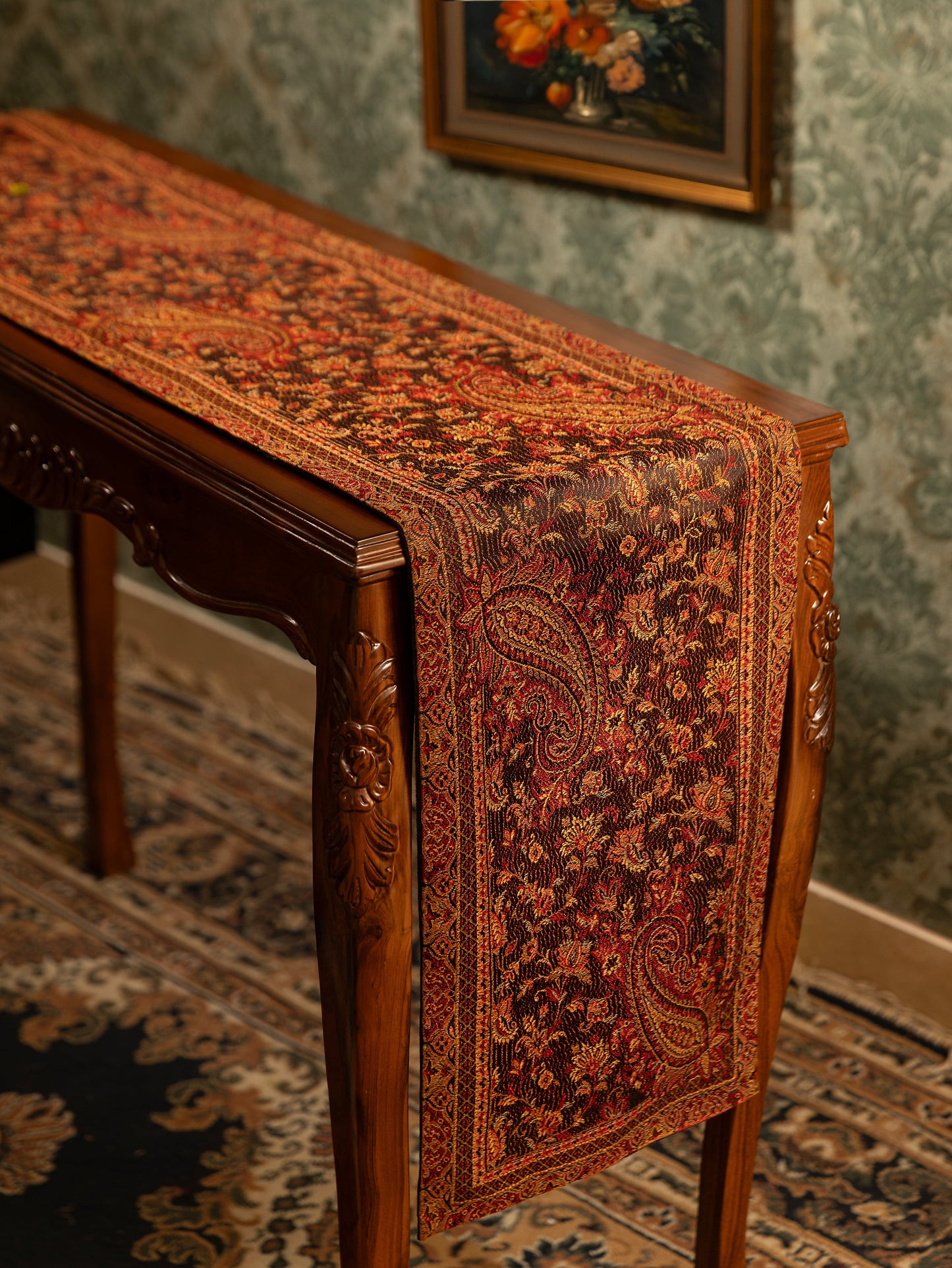 Pashtush Luxury Table Runner, Jamawar Collection, Coffee