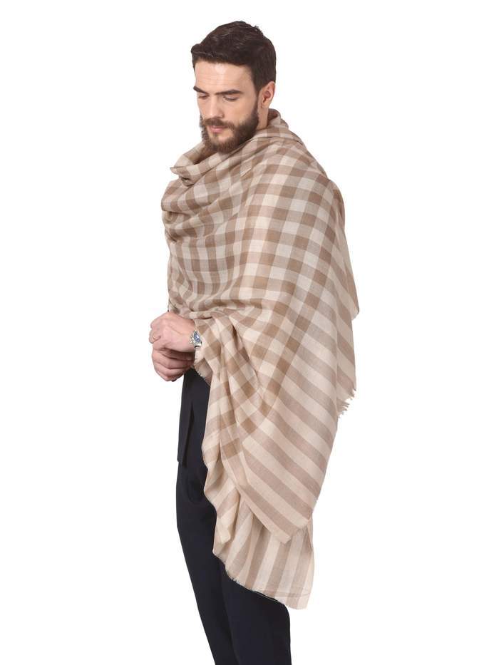 Pashtush Mens Check Shawl, Extra Fine Wool, Soft And Light Weight