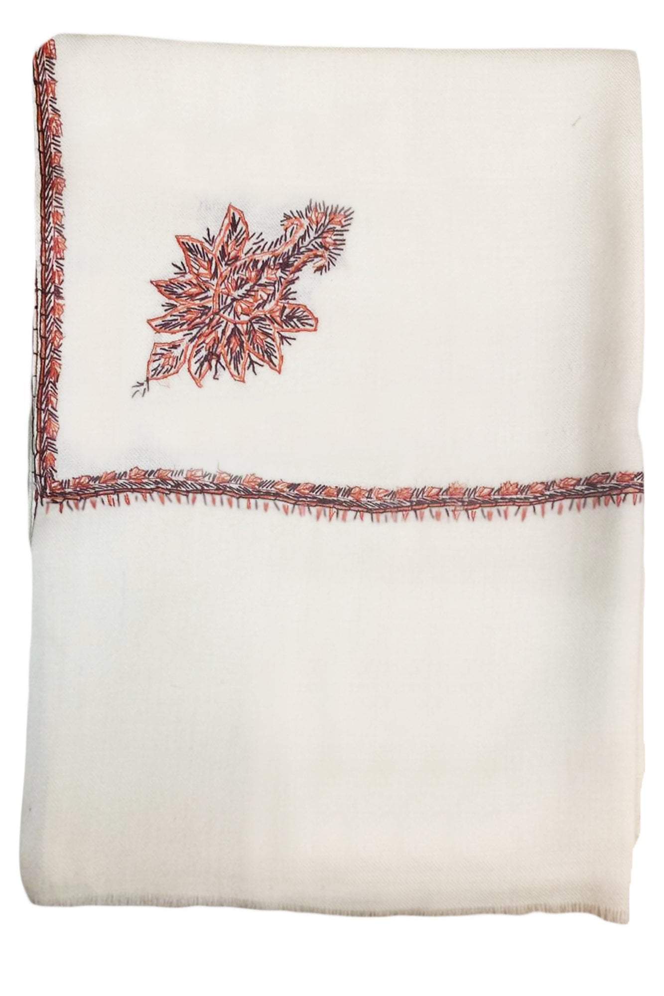 Pashtush Mens Embroidery Shawl, Gents Thick Wool Shawls, 100% Handmade Embroidery, Ivory