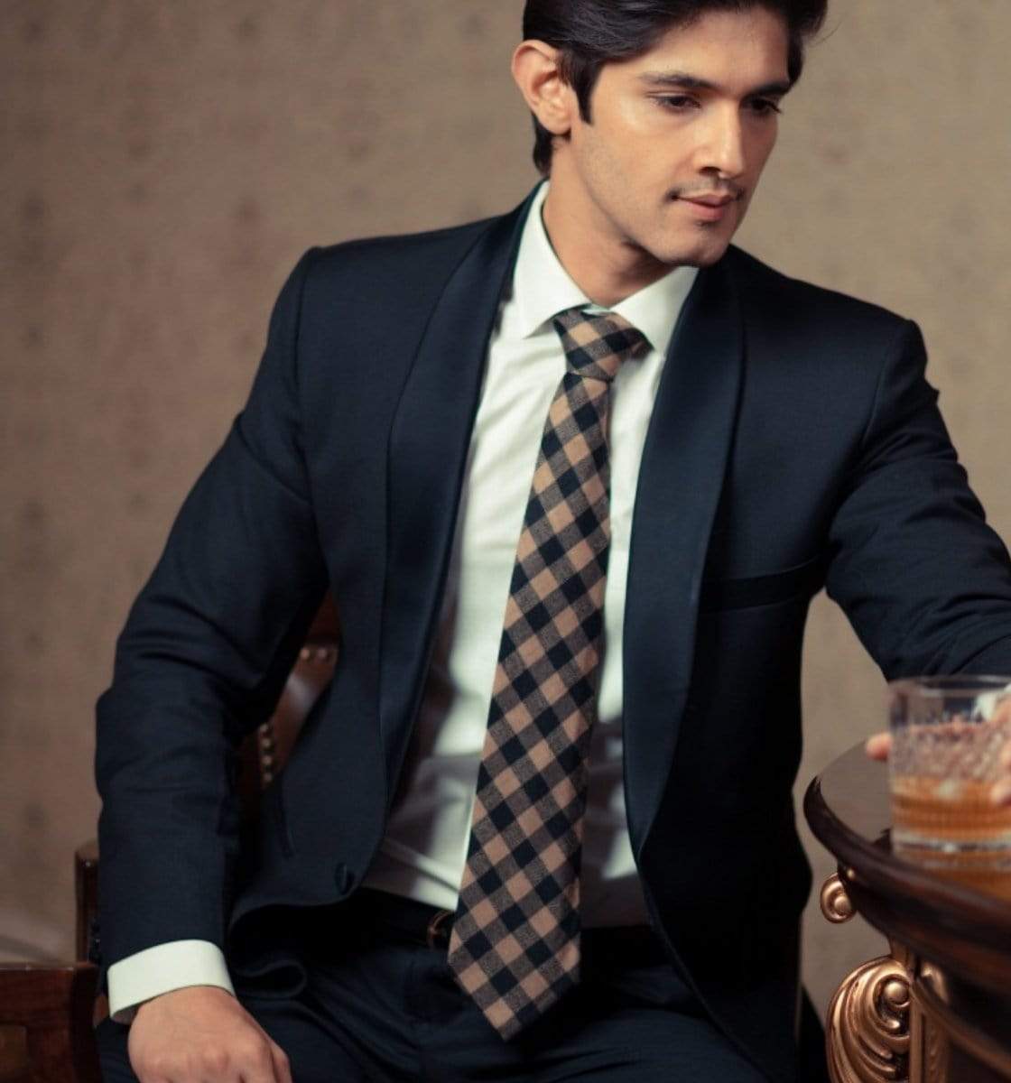 Pashtush Mens Necktie, Soft And Luxurious, Checkered Design, Extra Fine Ties For Men, Free Size