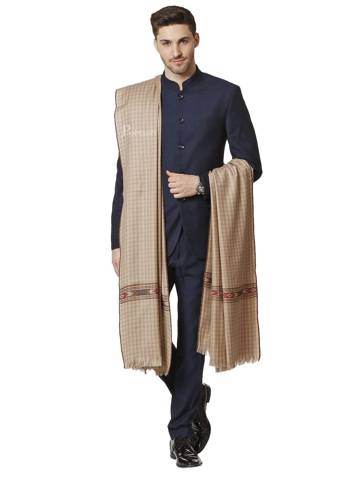 Pashtush Mens Aztec Weave Shawl With Checkered Weave, Beige