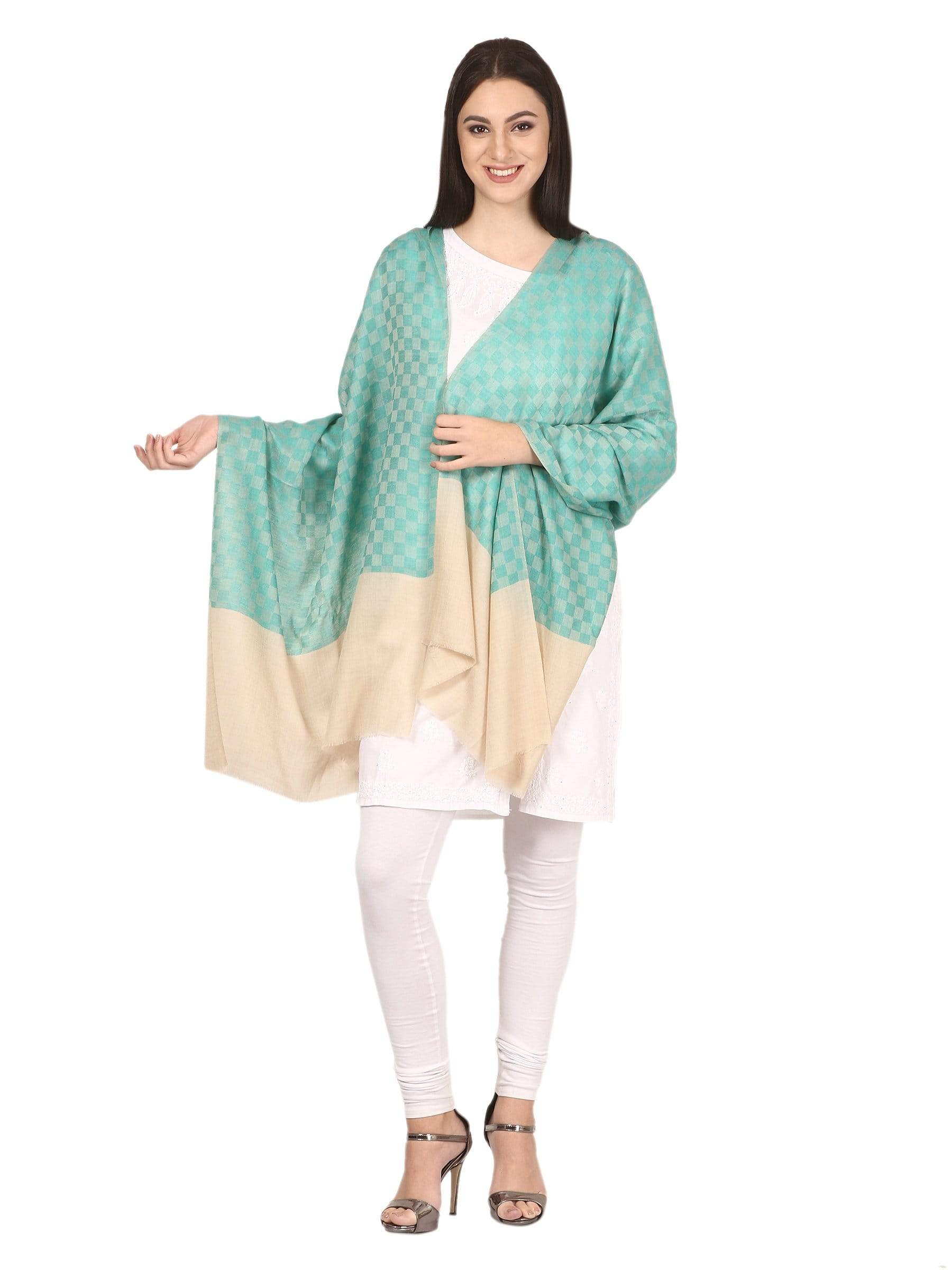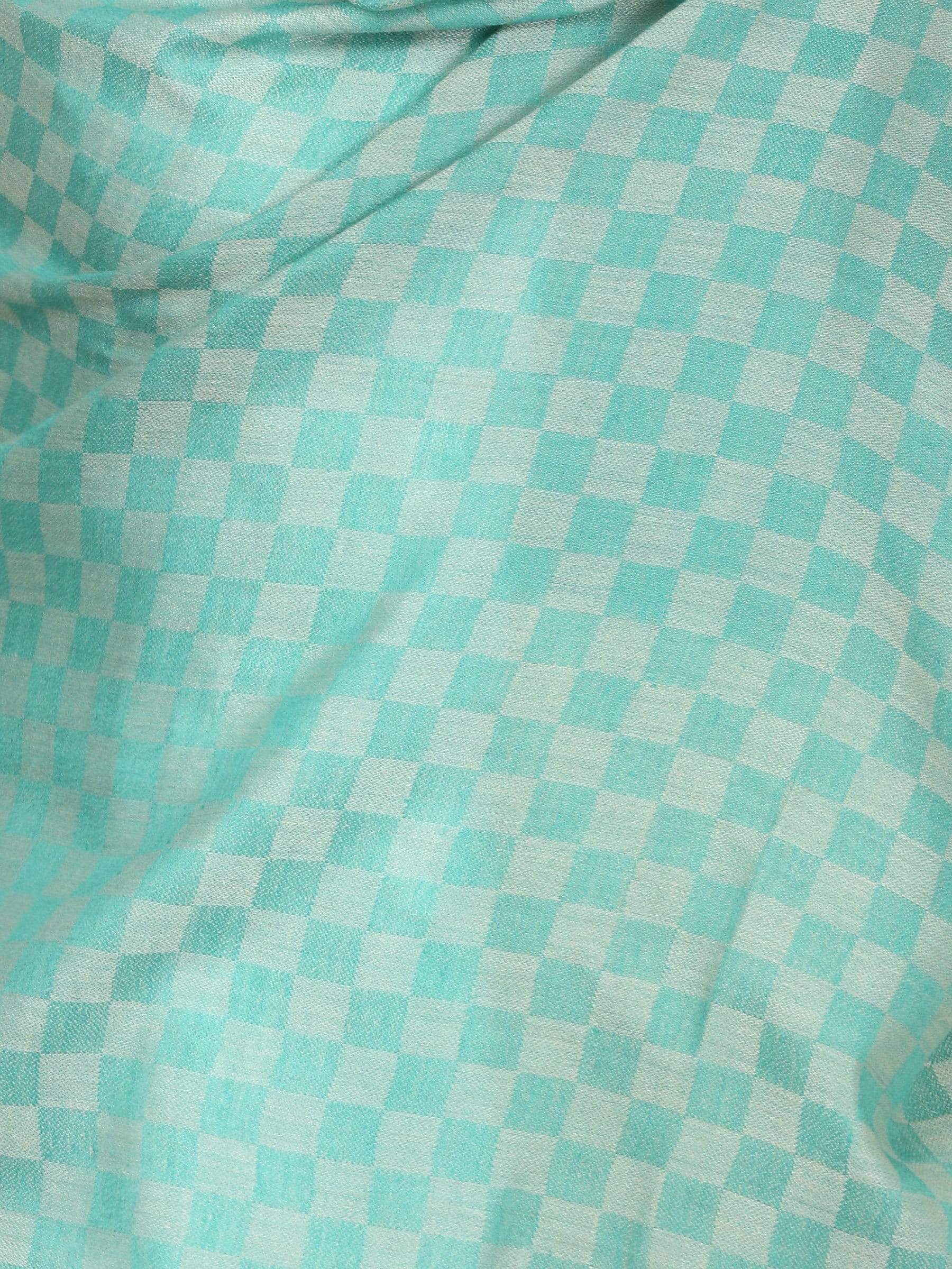 Pashtush Women’s Extra Fine Soft Wool Checkered Stole Sea Green
