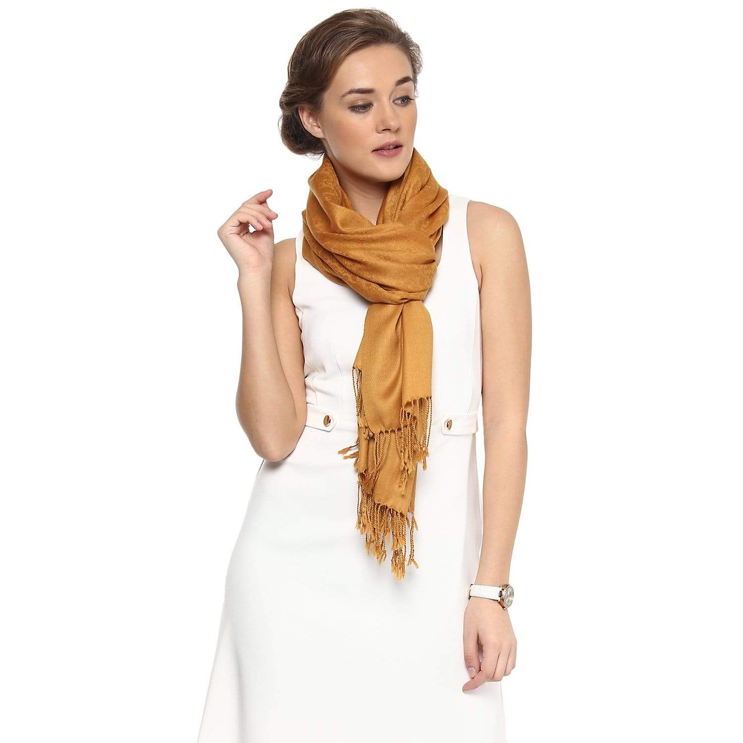 Pashtush Womens Stole, Fine Wool Scarf, Paisley Jacquard Weave, Mustard