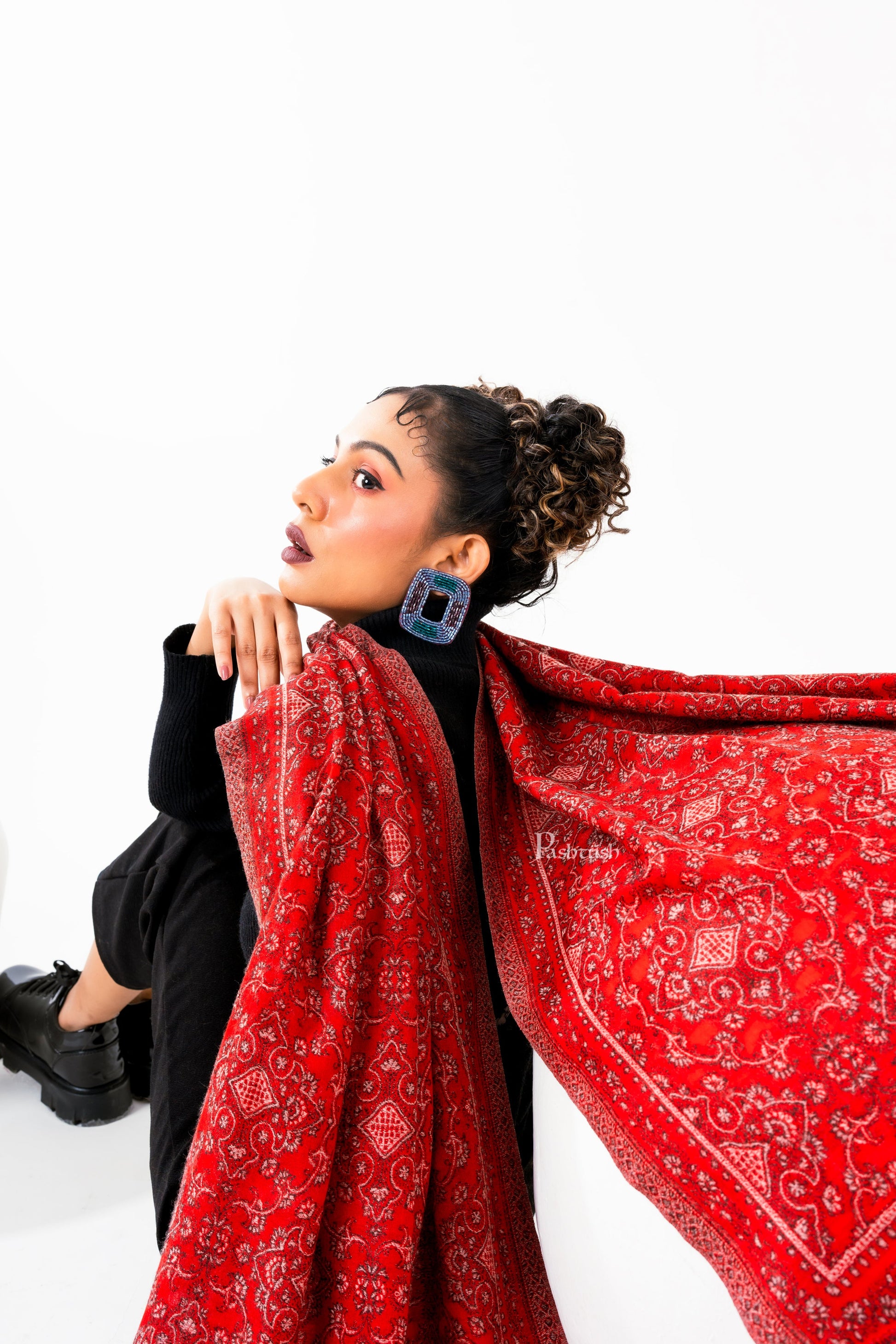 Pashtush Womens 100% Pure Wool With Woolmark Certificate Stole, Paisley Design, Maroon