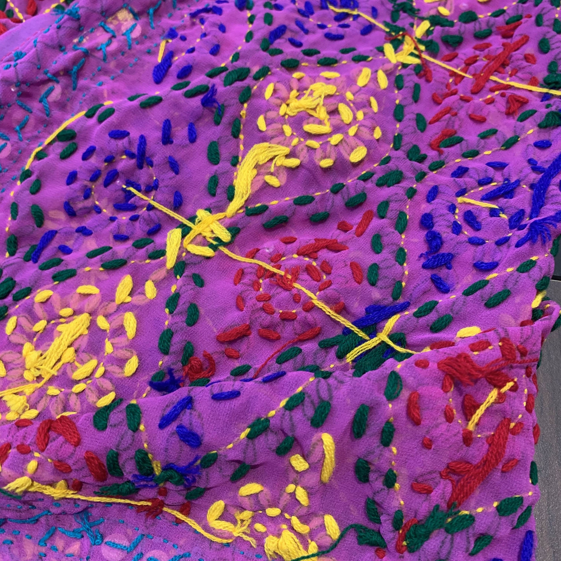 Pashtush Womens Dupatta, 100% Hand Embroidered Needlework Work, Free Size, Multi-Coloured