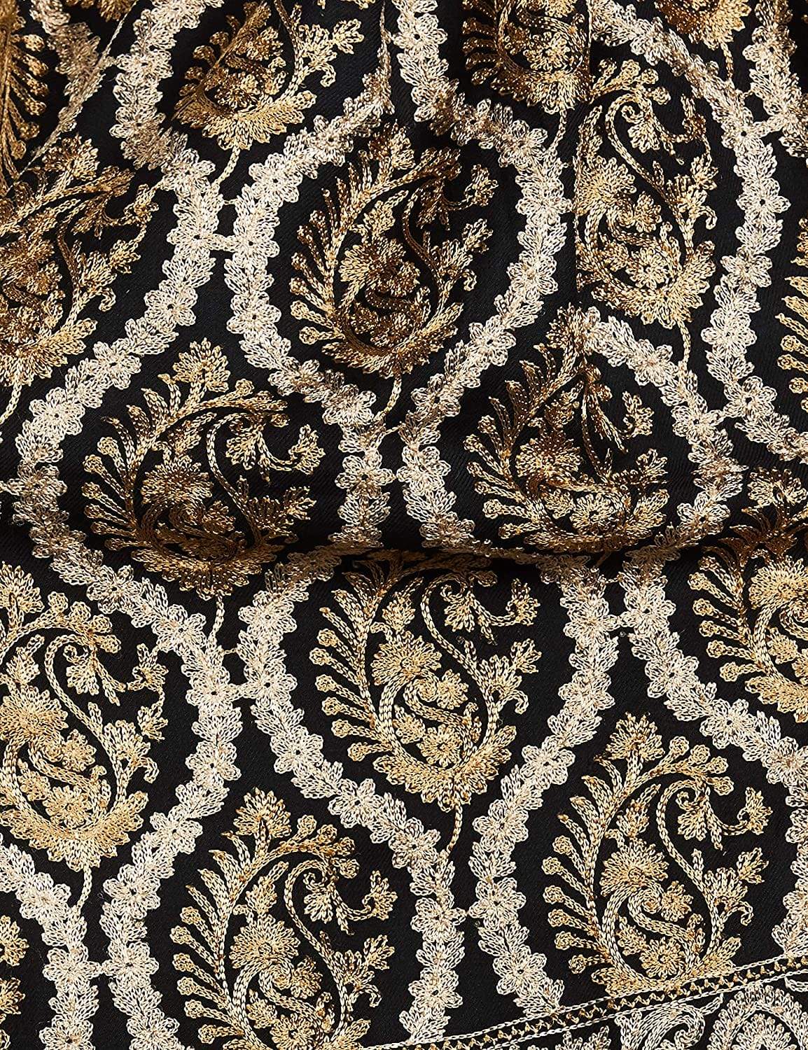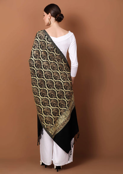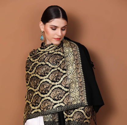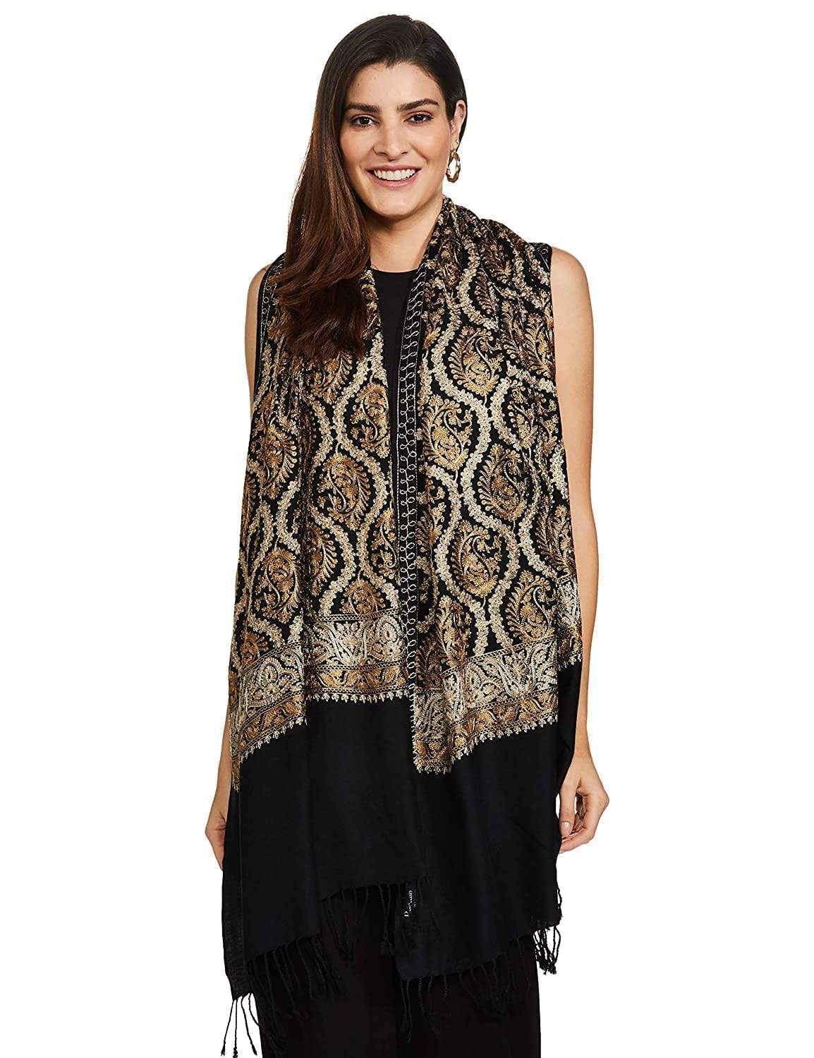 Pashtush Womens Fine Wool, Silky Nalki Embroidery Needlework Stole, Black