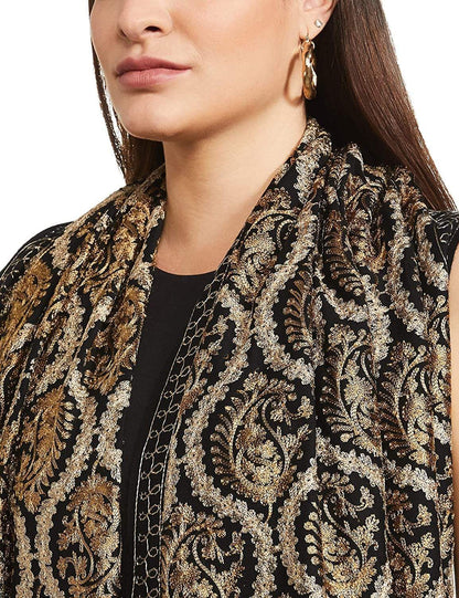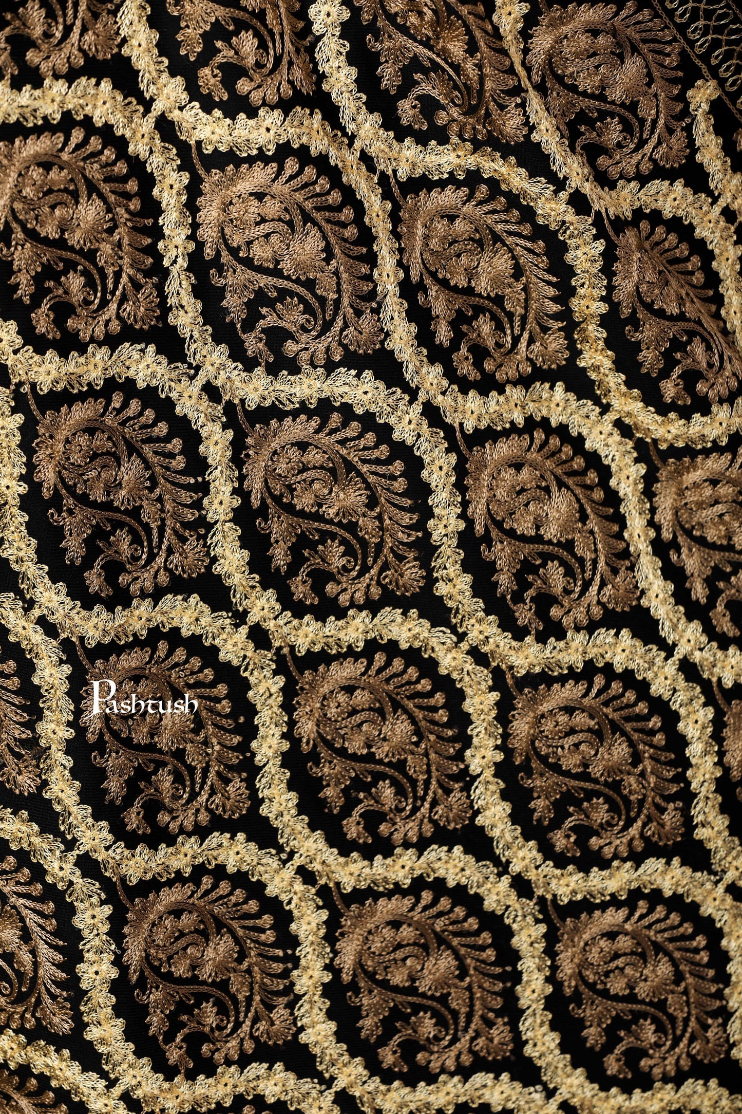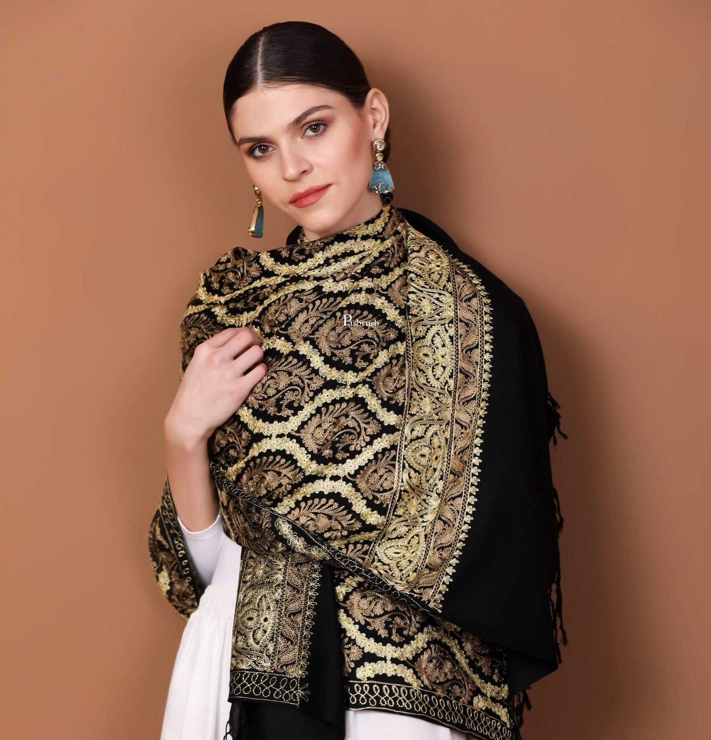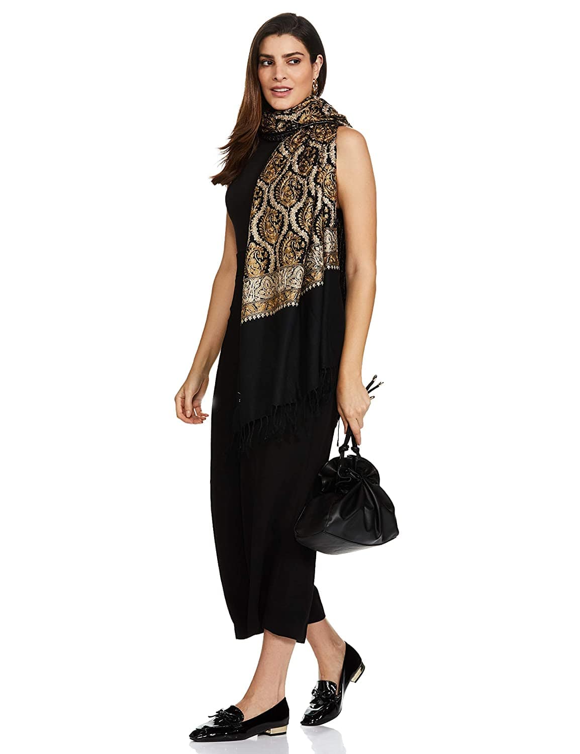 Pashtush Womens Fine Wool, Silky Nalki Embroidery Needlework Stole, Black
