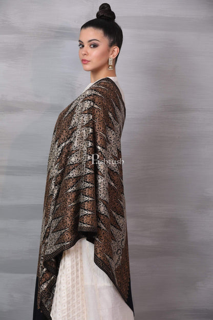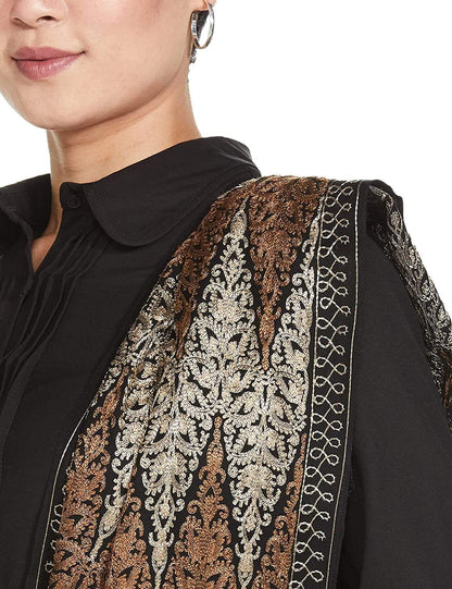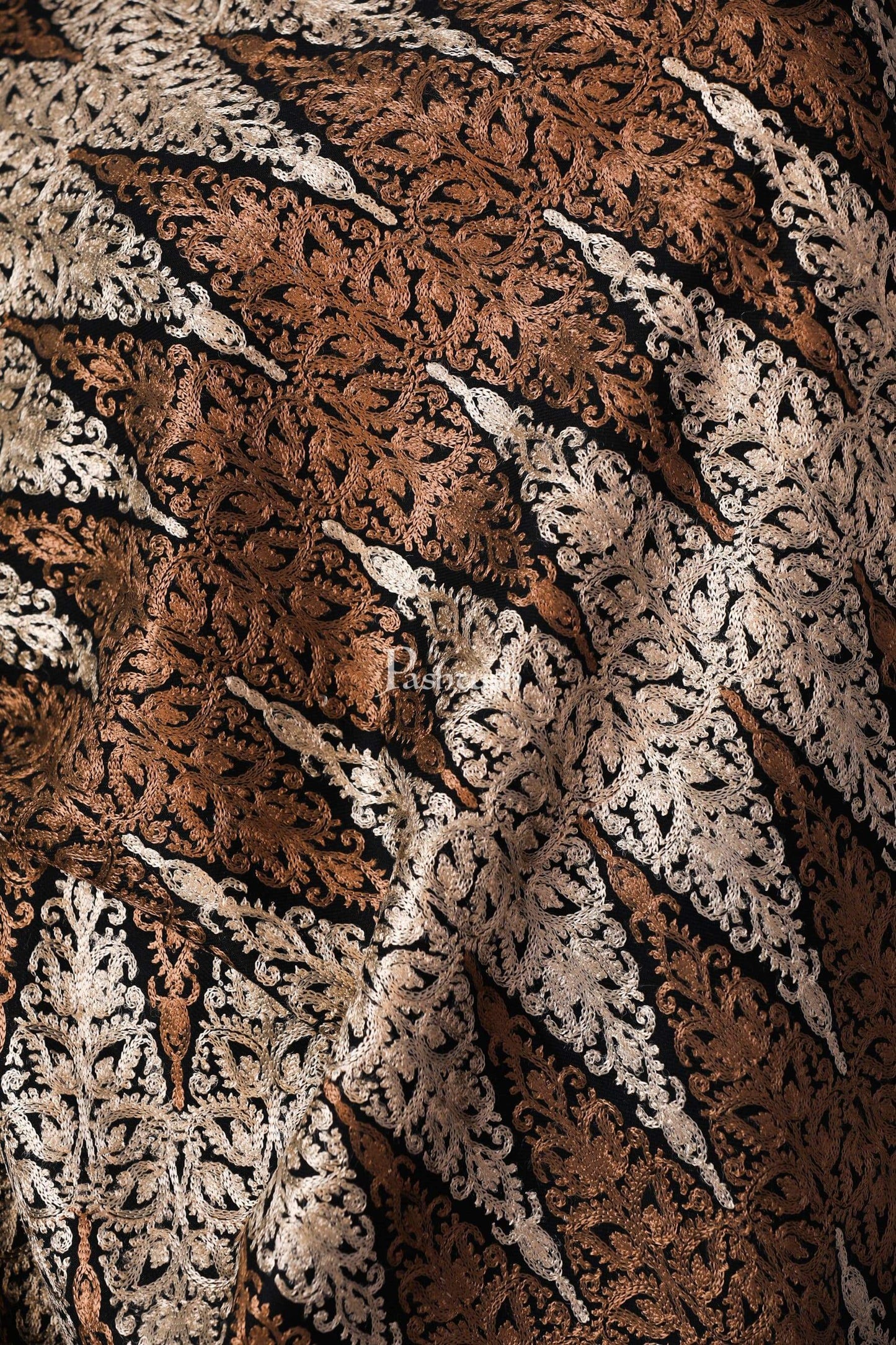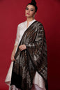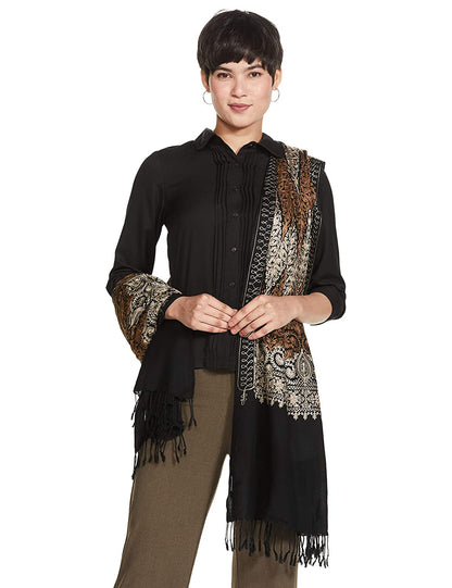 Pashtush Womens Fine Wool, Silky Nalki Embroidery Needlework Stole, Black