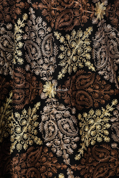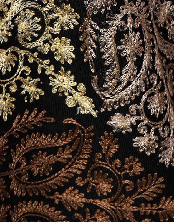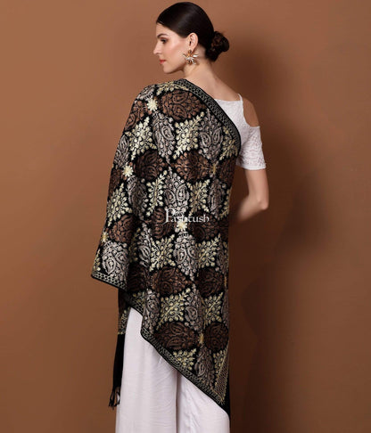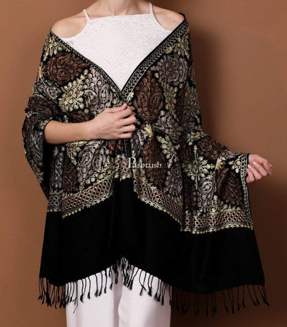 Pashtush Womens Fine Wool, Silky Nalki Embroidery Needlework Stole, Black