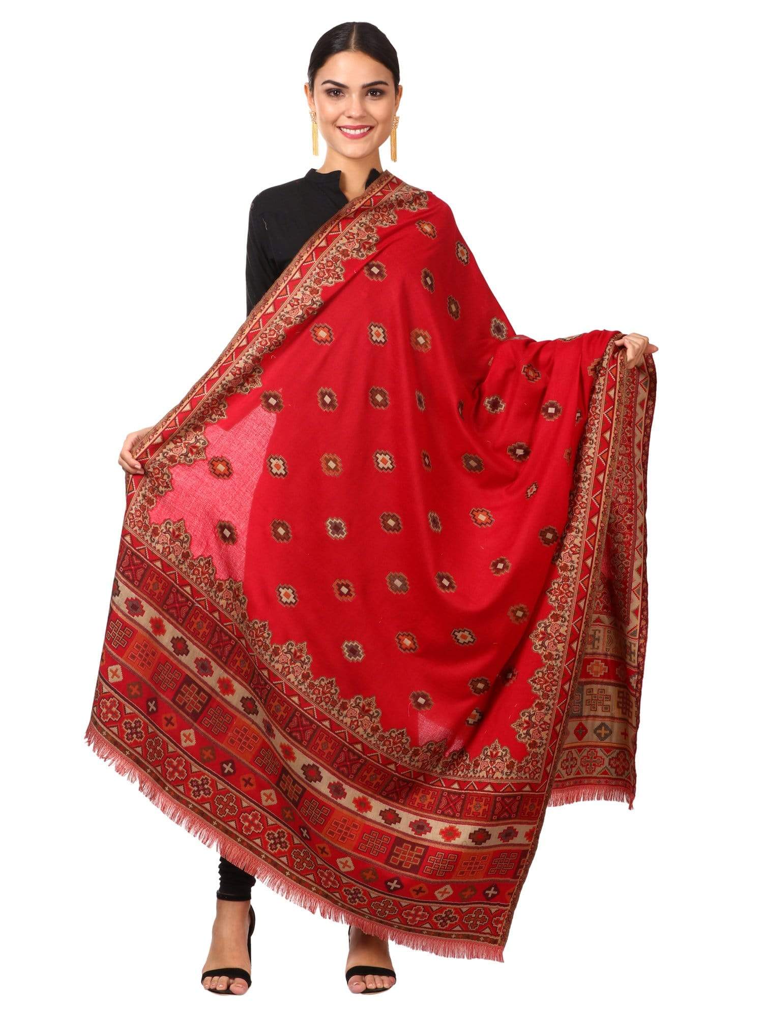 Pashtush Womens Aztec Jamawar Shawl, Faux Pashmina Maroon