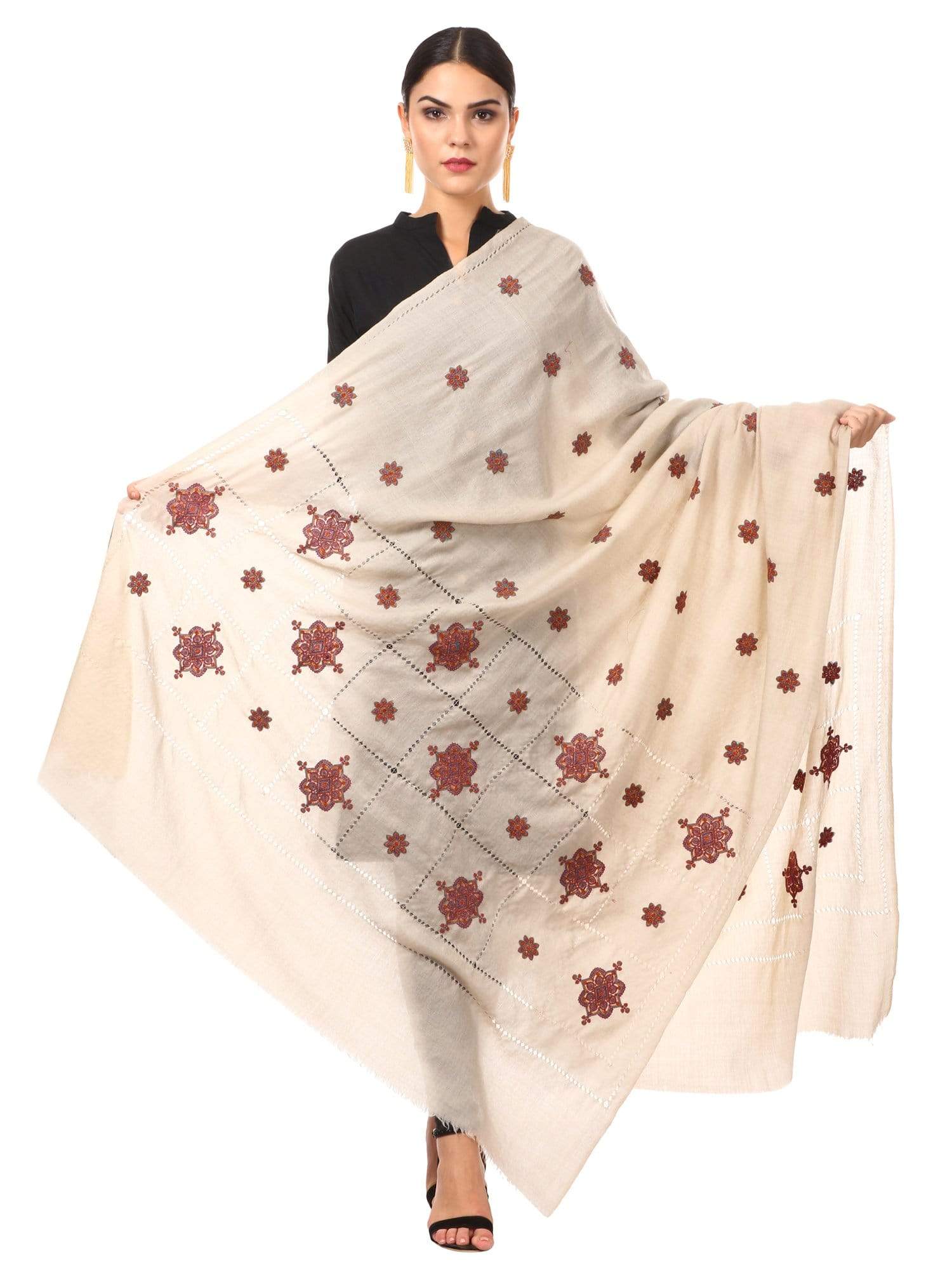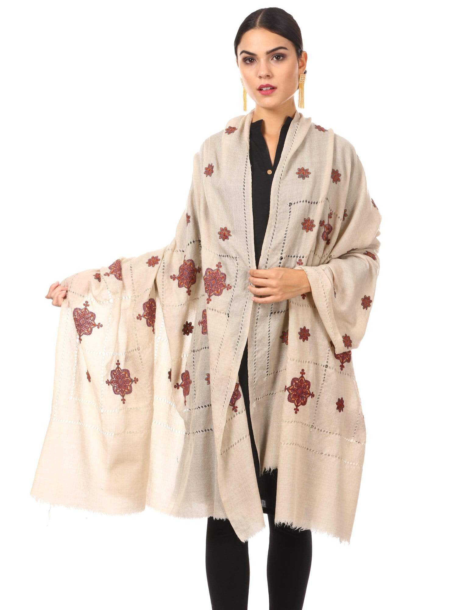 Pashtush Womens Shawl With Tarkashi, Fineembroidery With Hand Knotted. Hand-Made Shawl