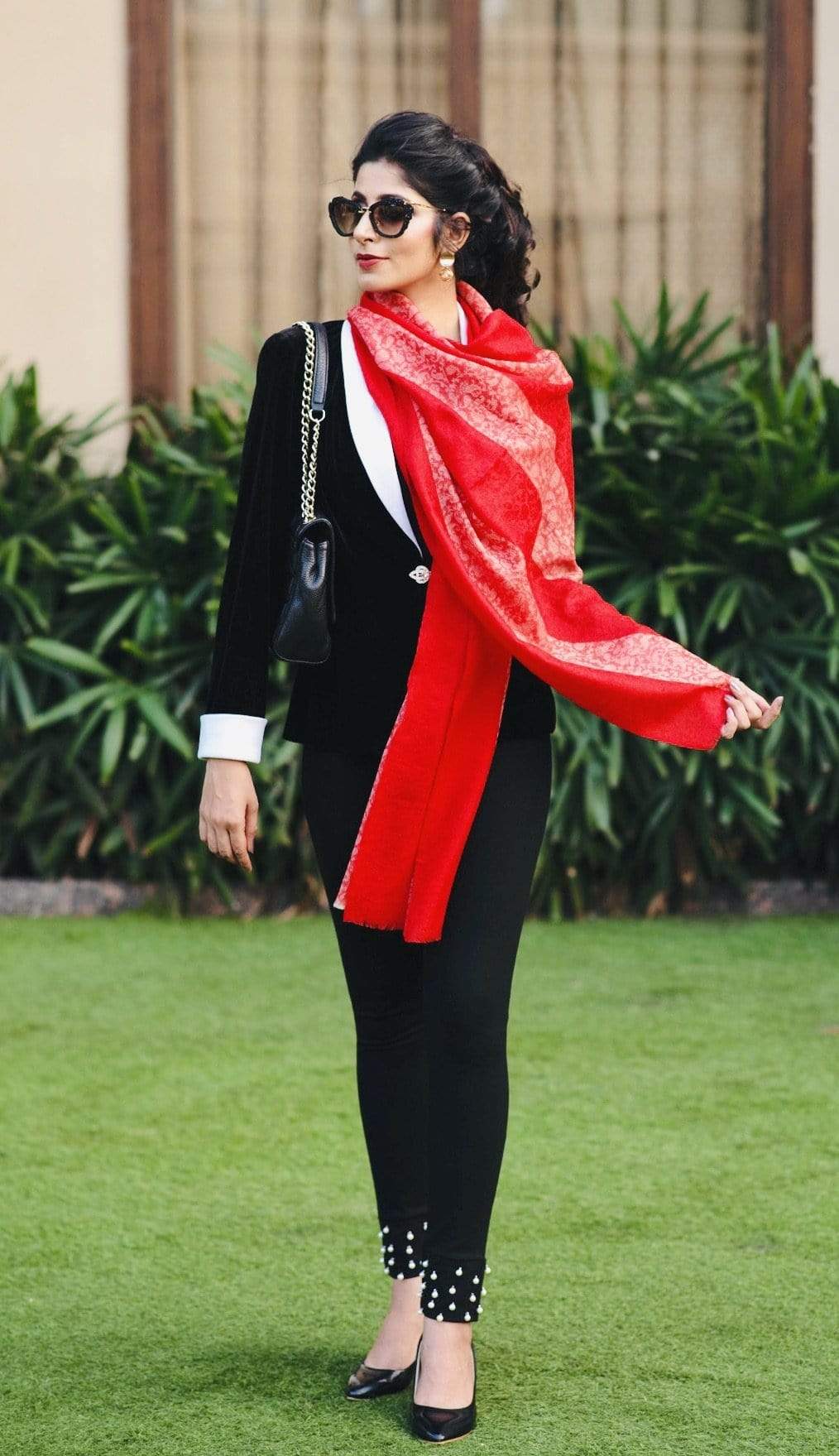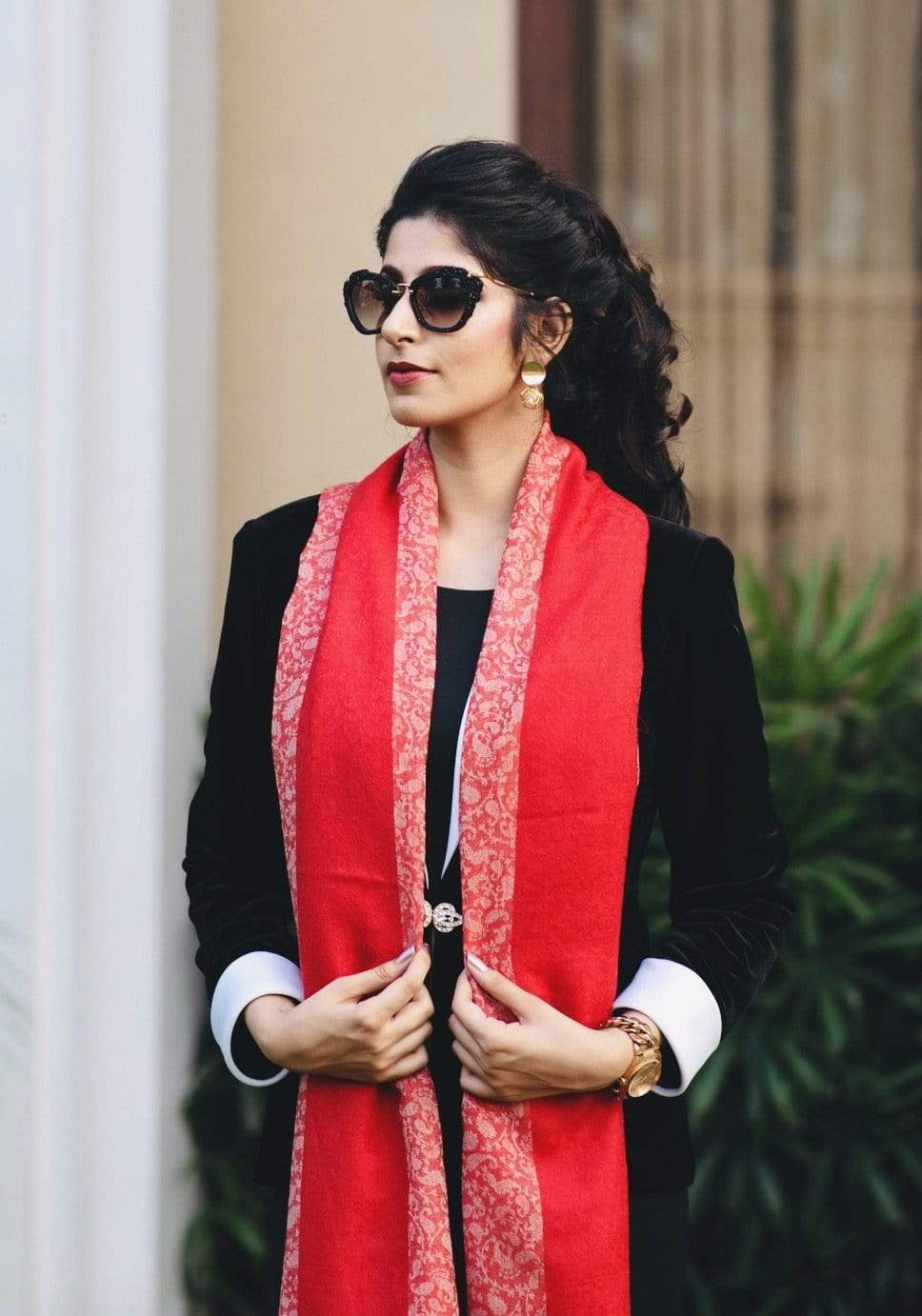 Pashtush Women'S Silk-Fine Wool Reversible Stole Red