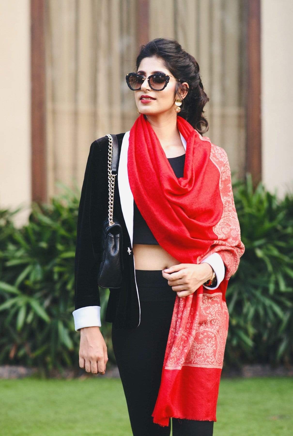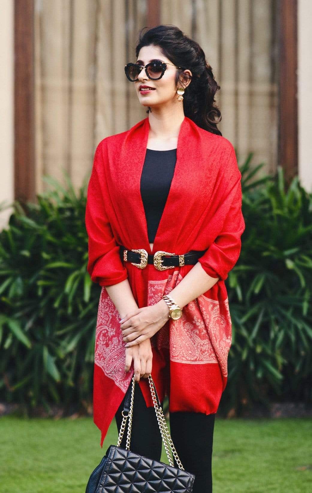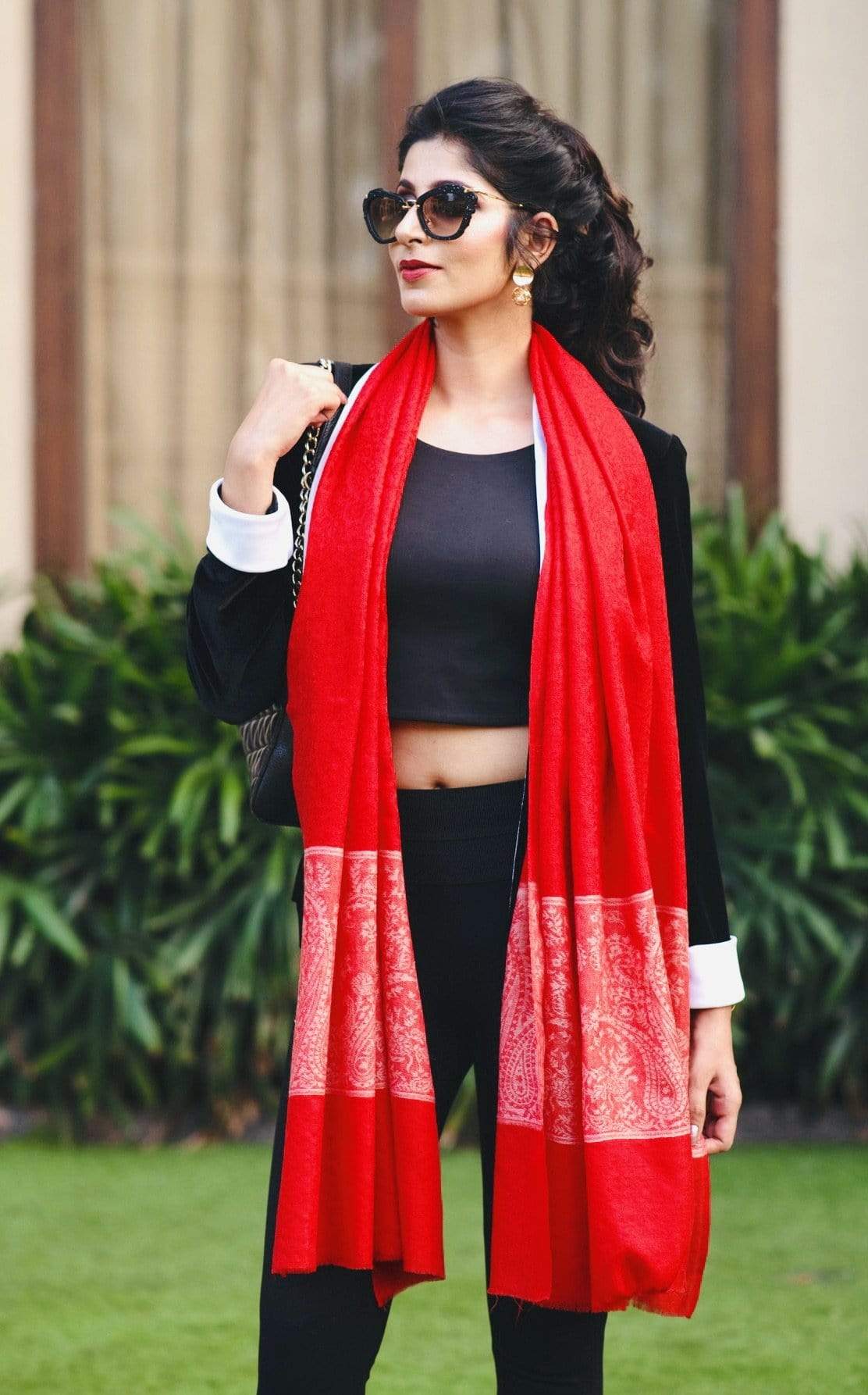 Pashtush Women'S Chanting Paisley Reversible Stole, Scarlet Red