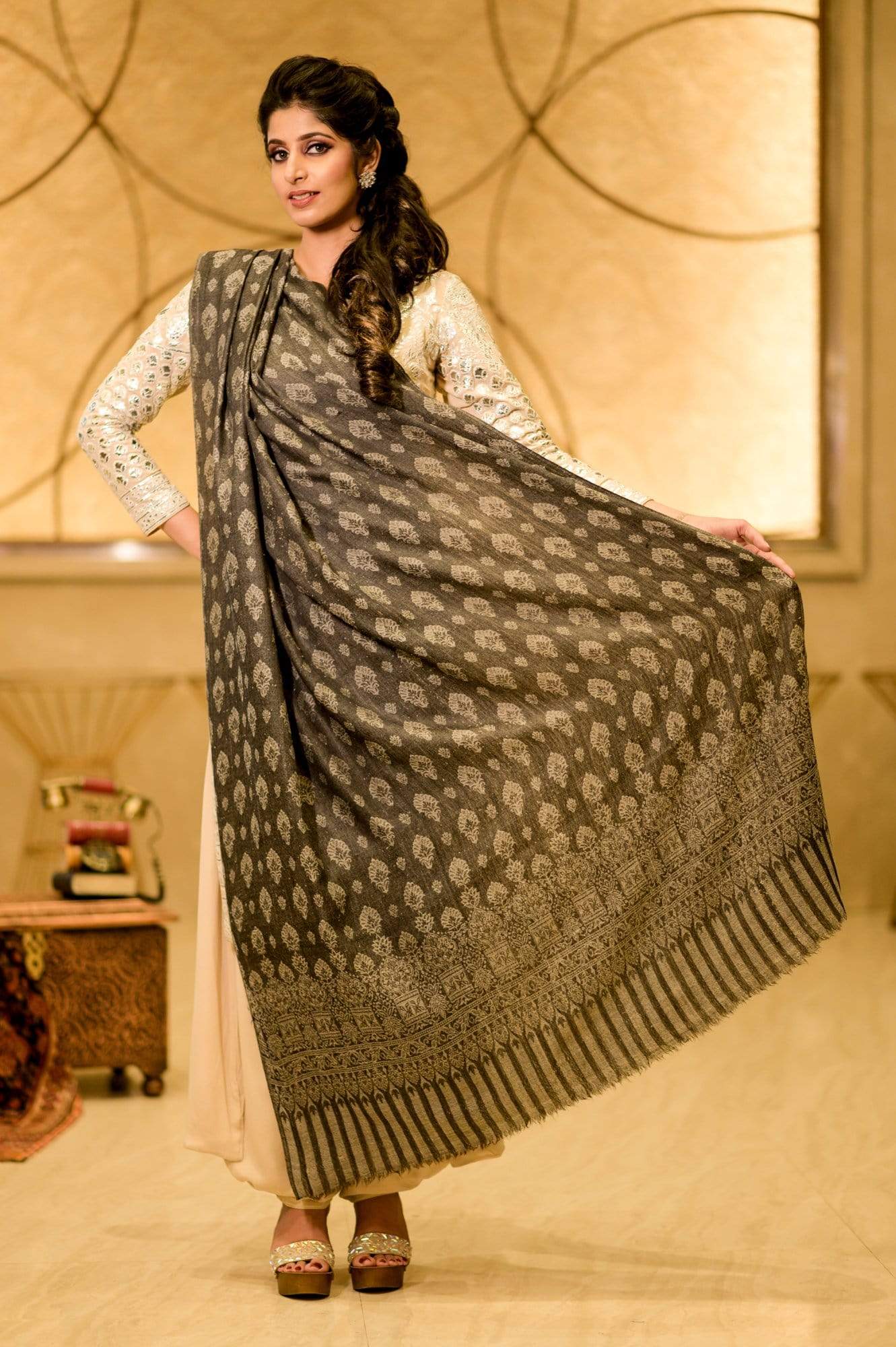 Pashtush Womens Soft Wool Shawl, Jacquard Design, Faux Pashmina Shawl, Black