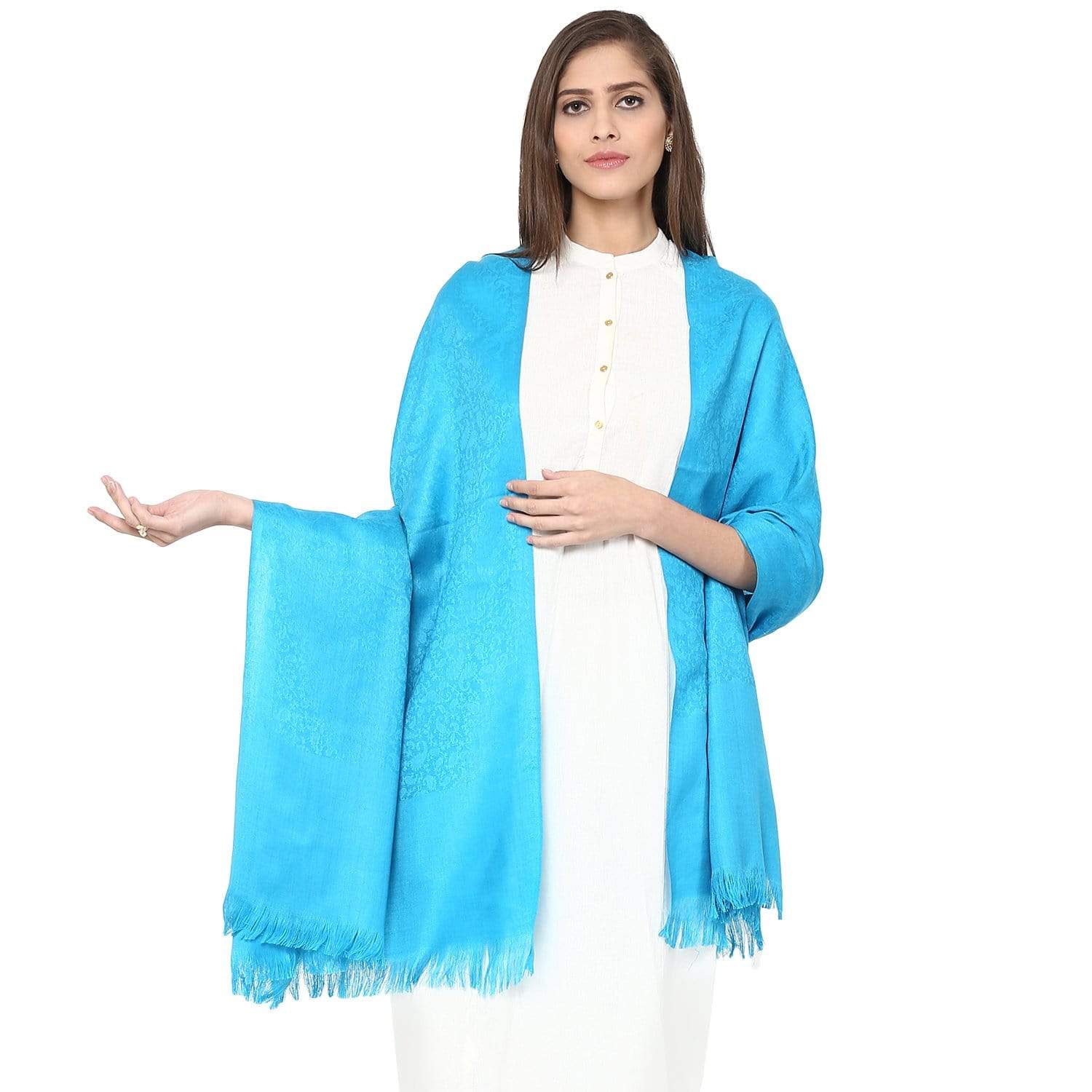 Pashtush Women'S Soft Wool Shawl Majenta With Jacquard Design, Aqua
