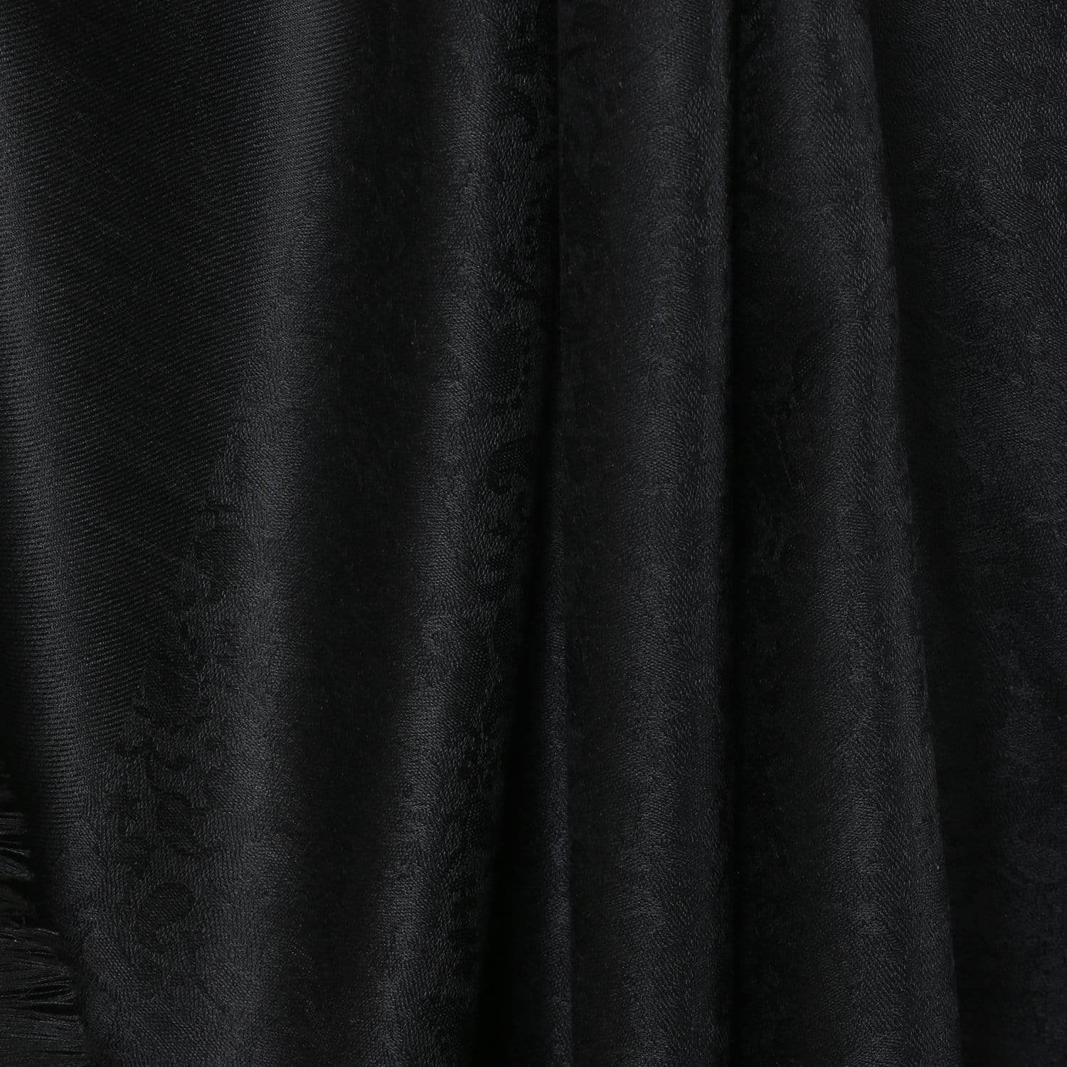 Pashtush Womens Shawl, Fine Wool With Paisley Jacquard Weave, Rich Black