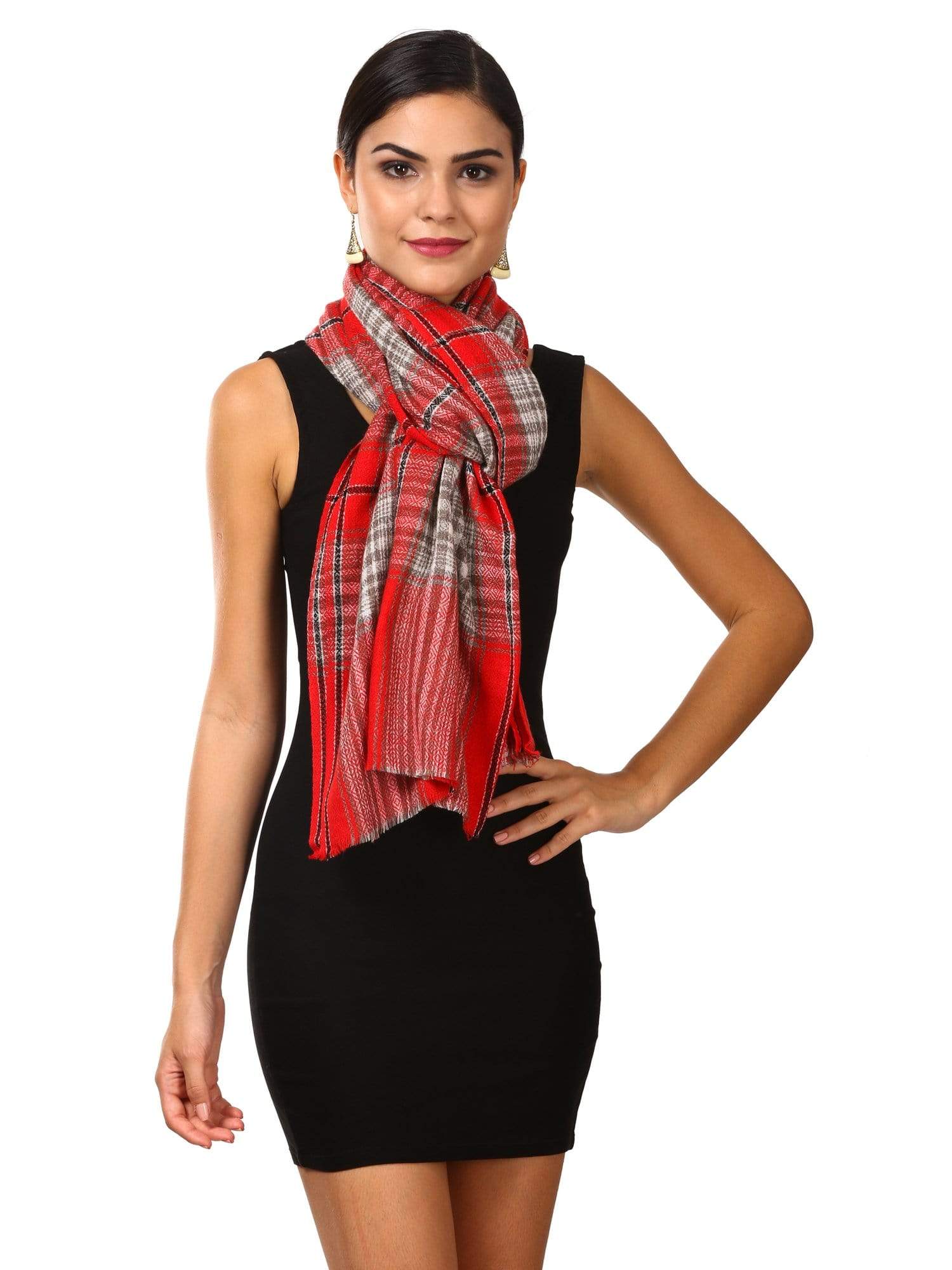 Pashtush Cashmere Wool Blended Plaid Muffler - Red And Beige Plaid