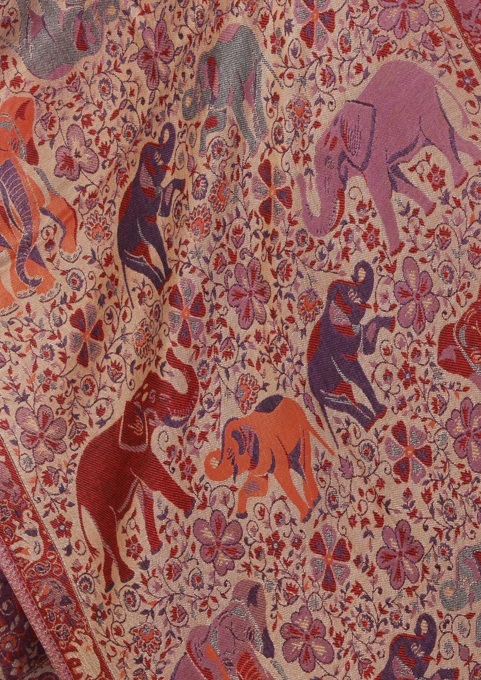 Pashtush Mens Fine Wool Reversible Muffler Tribal Elephants