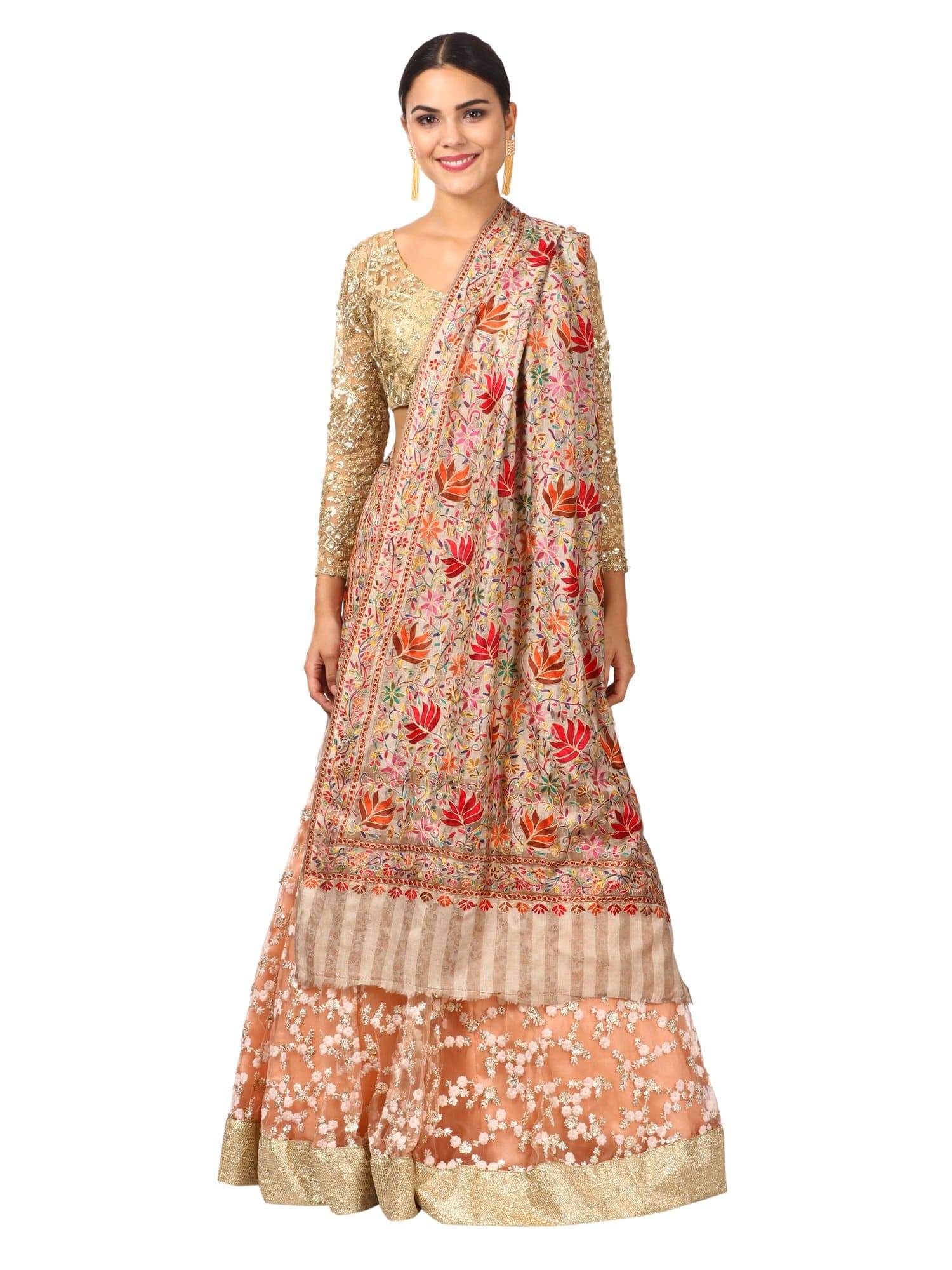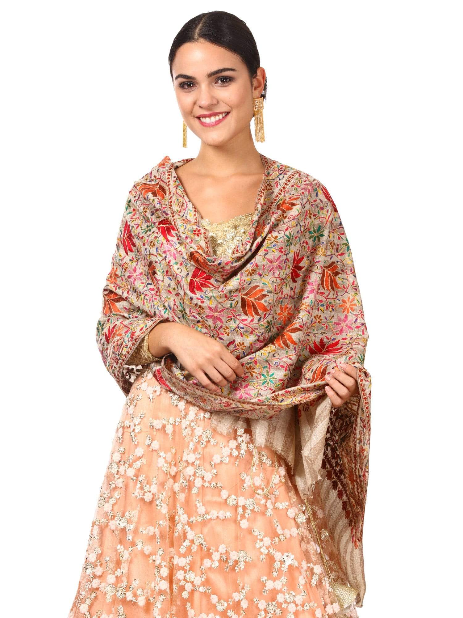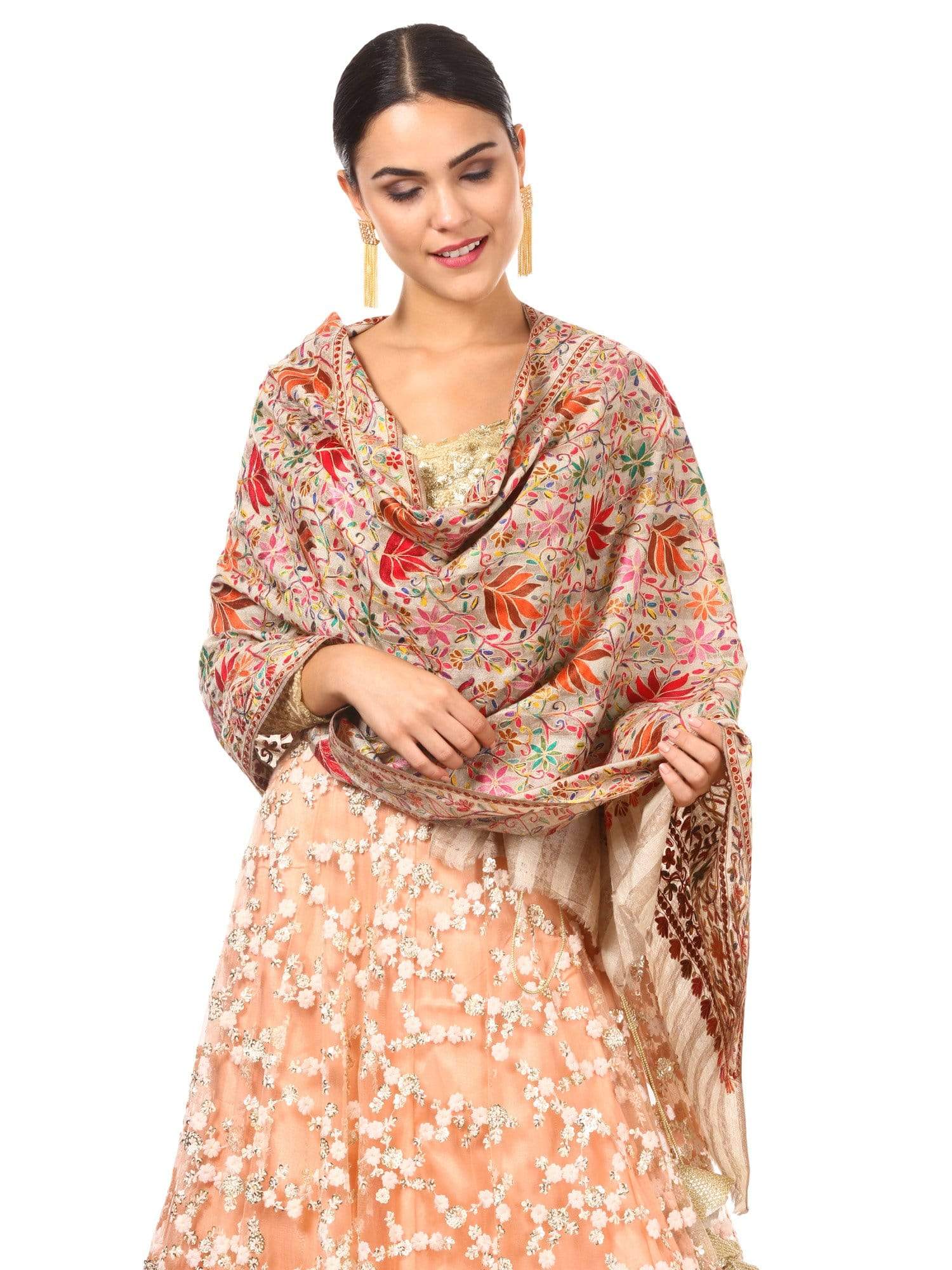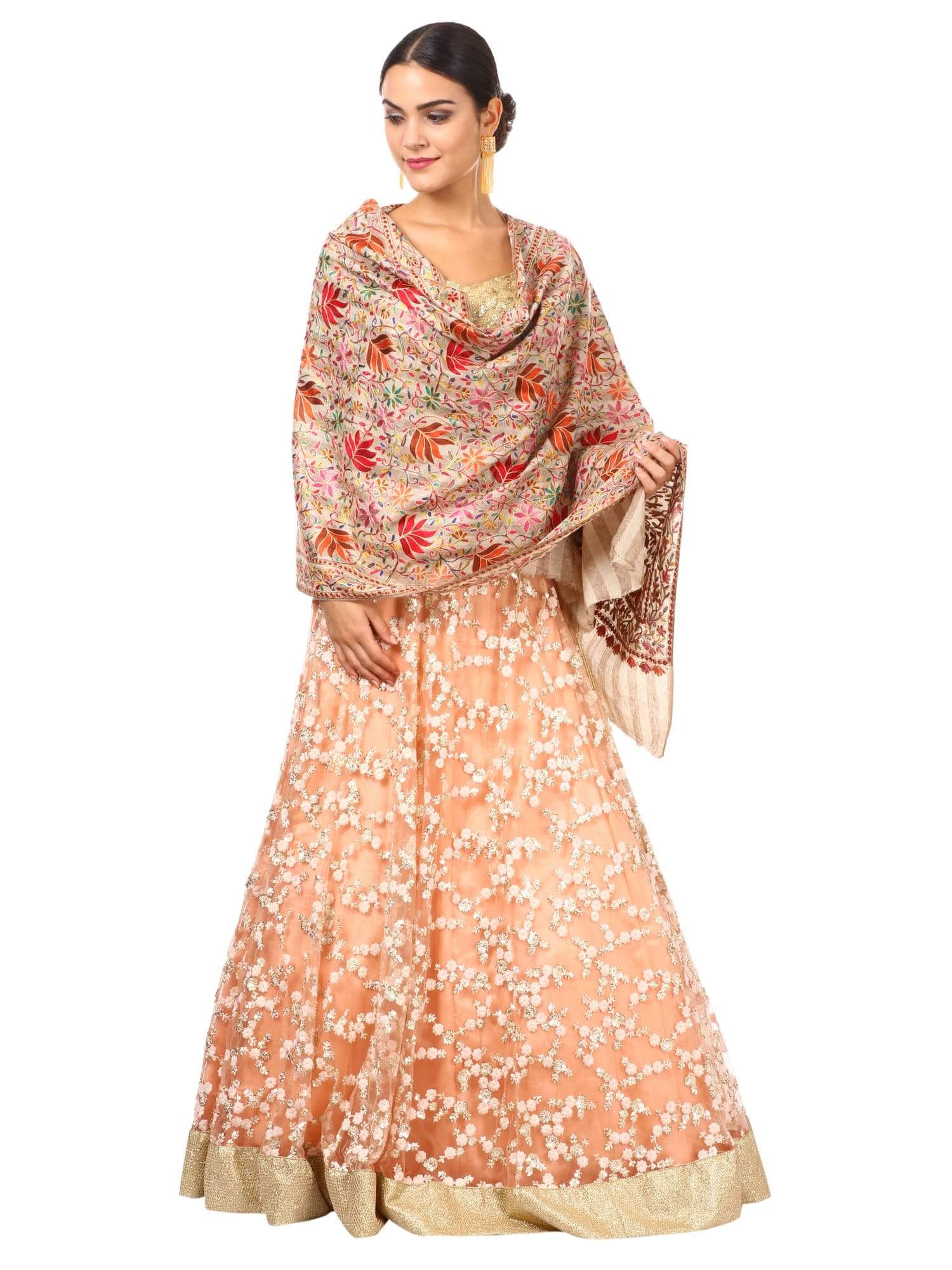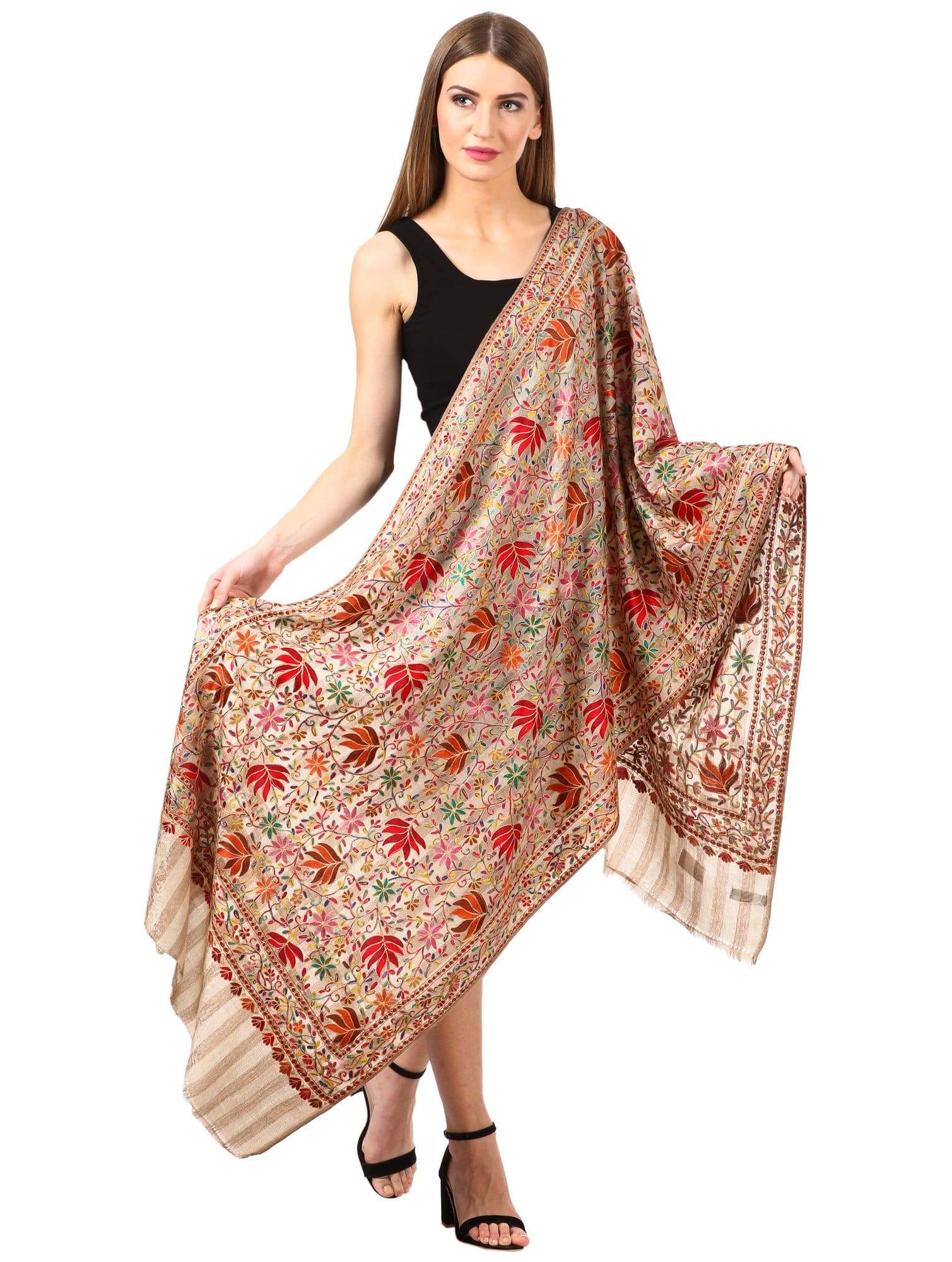 Pashtush Womens Hand Embroidery Nalki Stole, Multicoloured